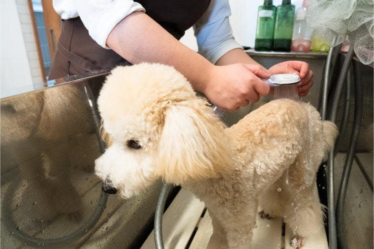 シャンプー中のわんちゃん