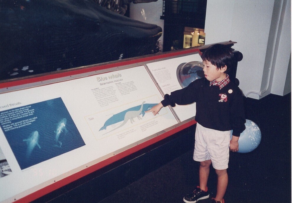 ロンドンの自然史博物館にて 恐竜に興味深々