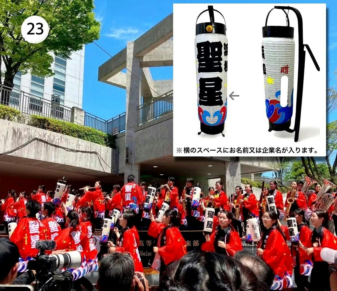 浜松聖星高等学校吹奏楽部のコンサートでは、『演出で提灯を使用する』曲があります。その提灯の老朽化に伴いこの度新調しようと考えております。その新調するうち10個の提灯にお名前または企業名をお入れします。