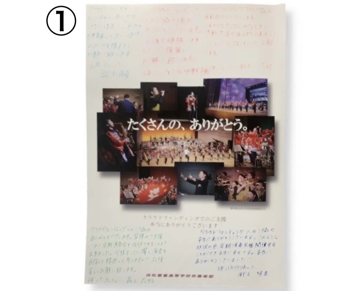 ①【部員直筆のサンクスレター】