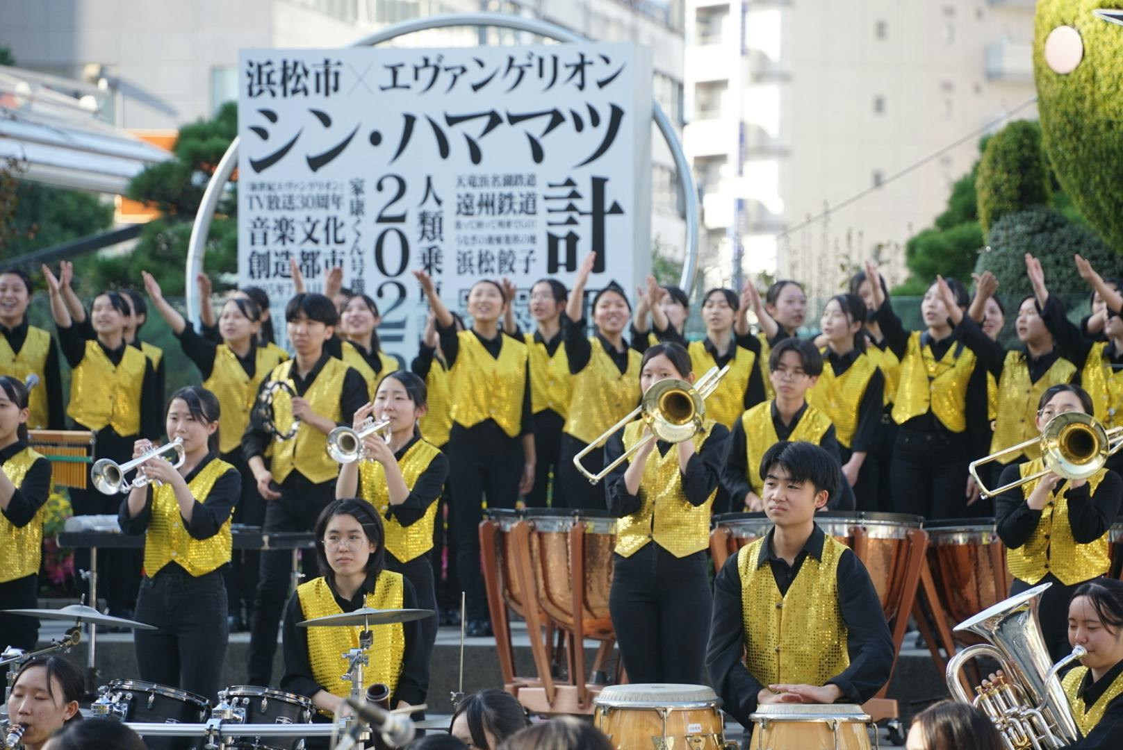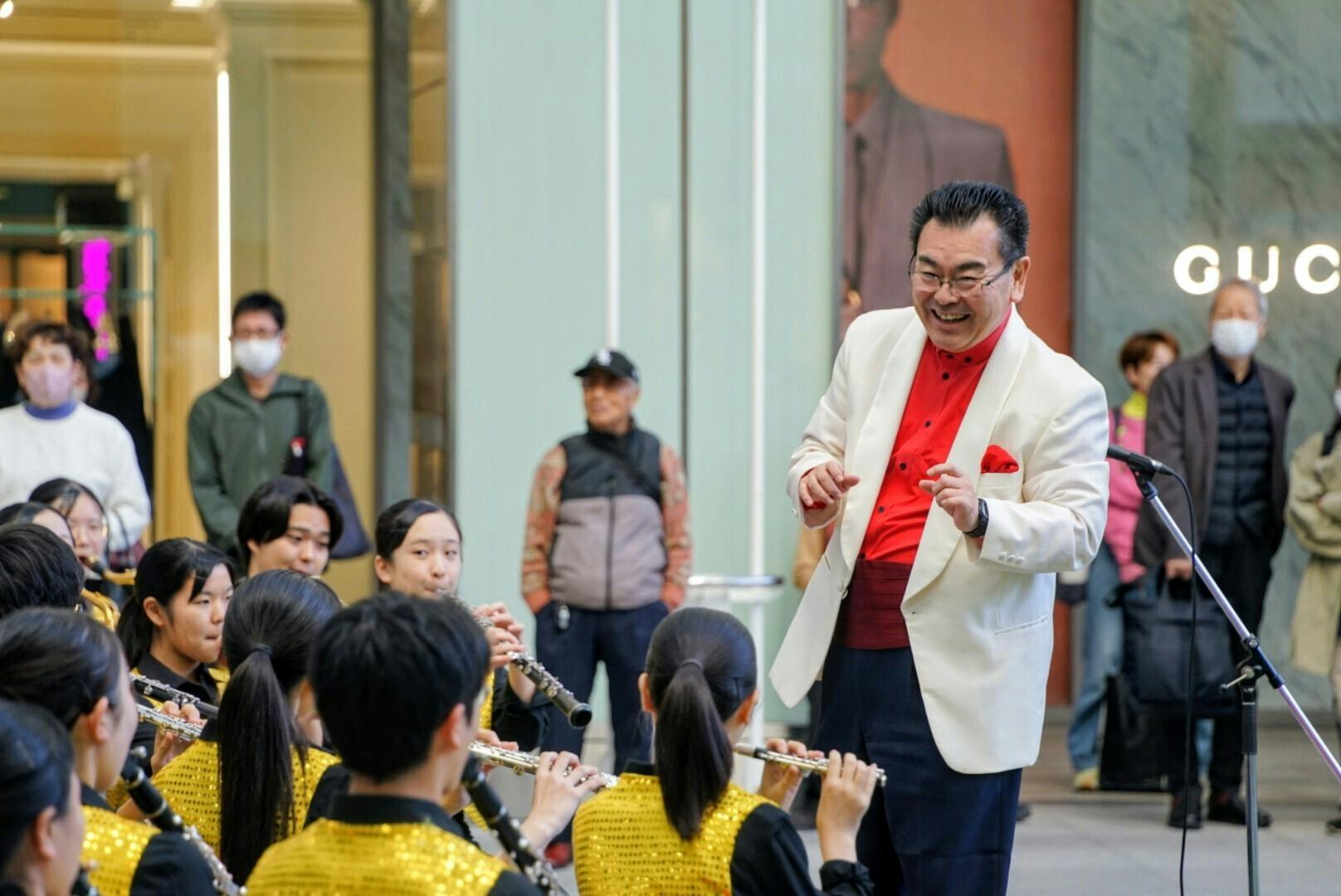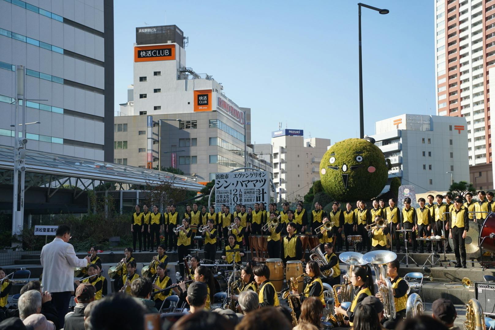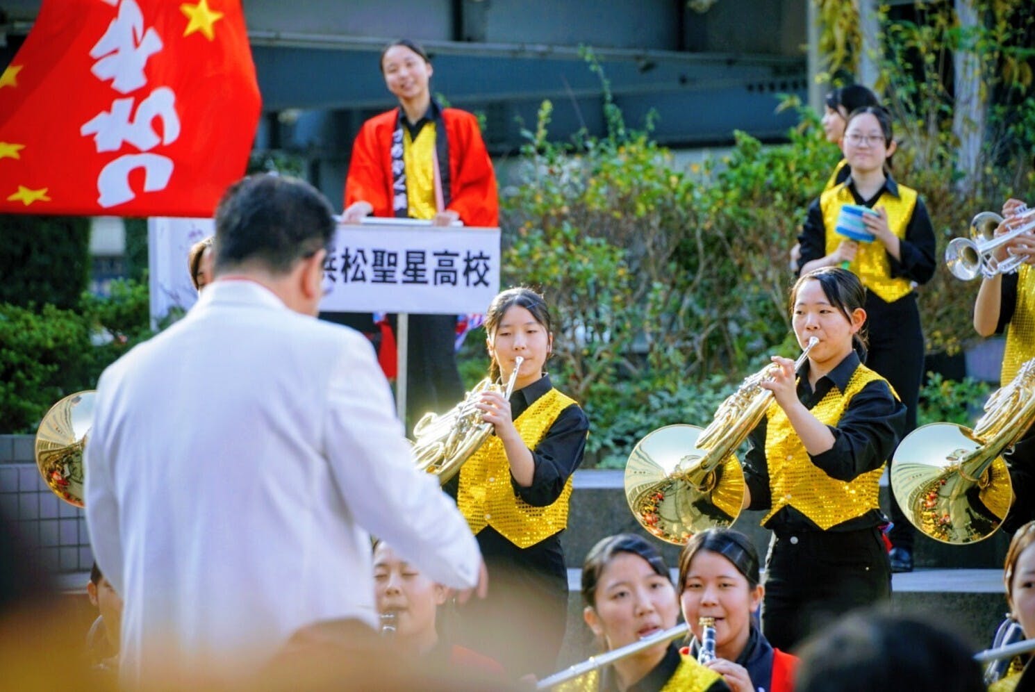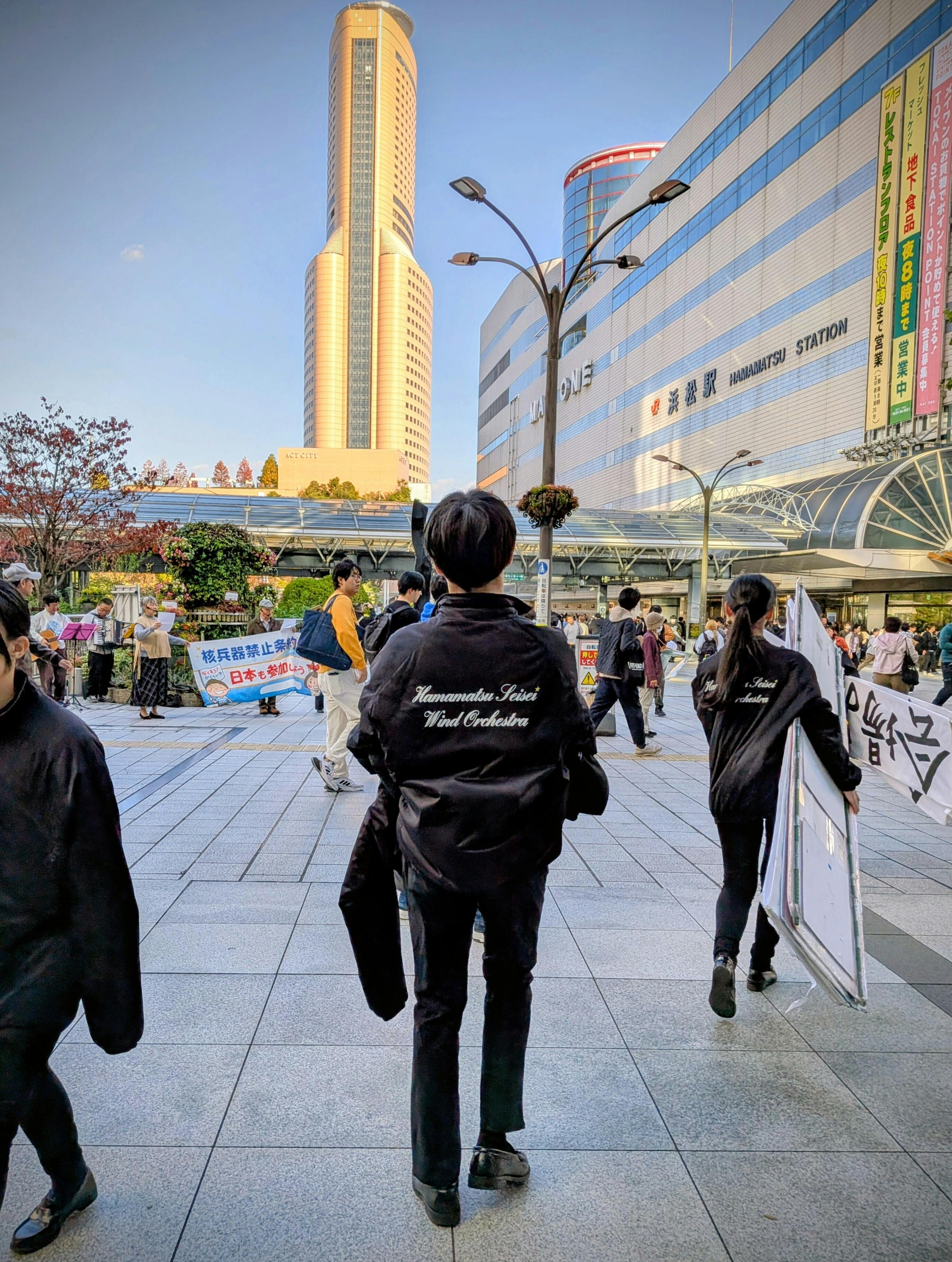 浜松駅前のプロムナードコンサートに向かう聖星生を発見!