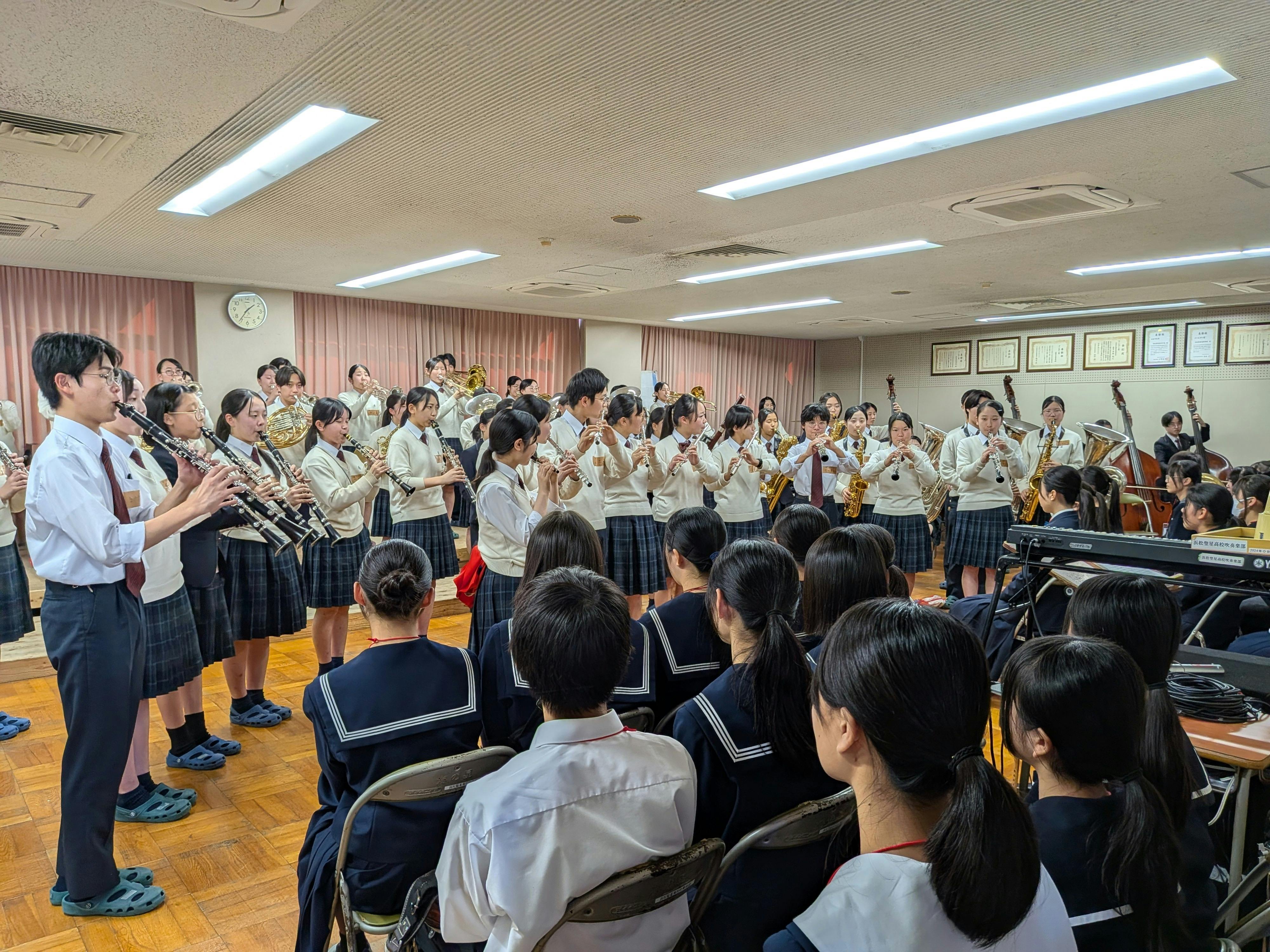 圧巻のウェルカムコンサートに始まり、現役部員と一緒にパート練習して、最後に中学生のみんなと「愛と真理でやらまいか」を演奏。