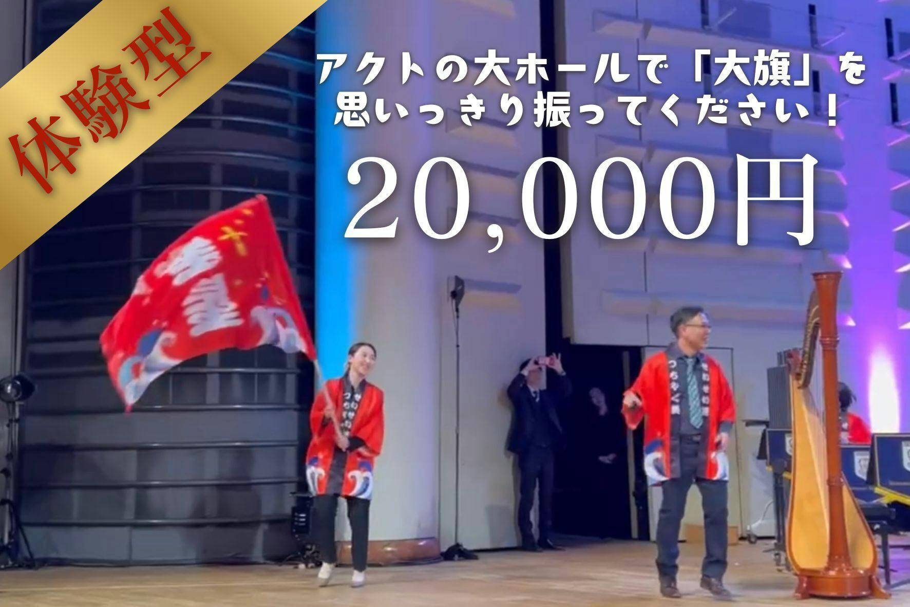 部長・幹事長が通常振っている「大旗」を法被を着て、アクトシティー大ホールのステージで思いっきり振ってください!