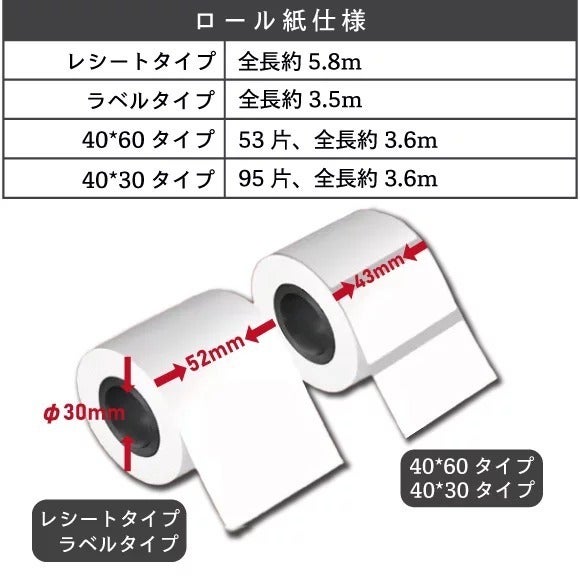 専用のラベル印刷ロール紙を使えばアプリで指定。