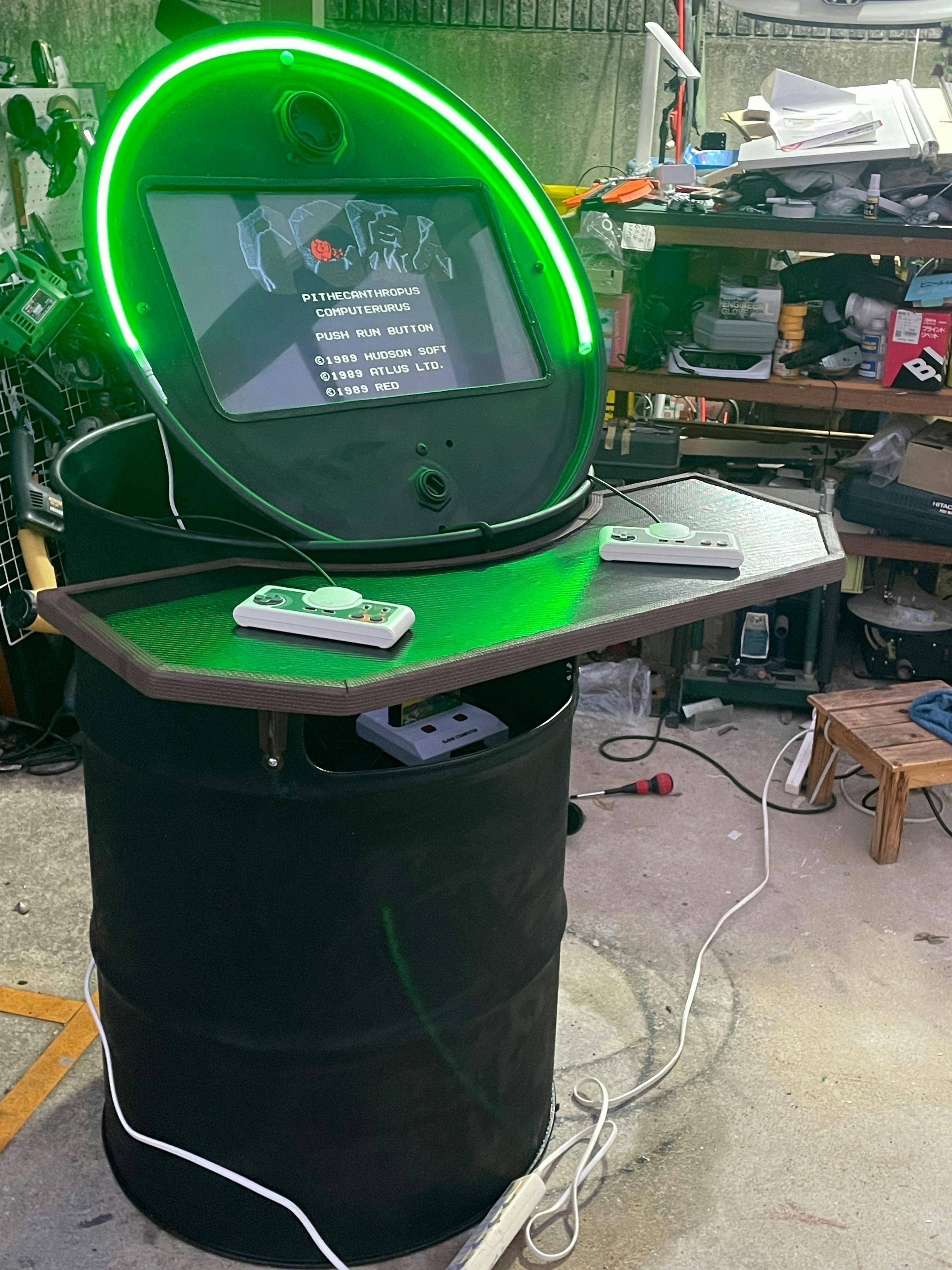 そこでドラム缶を使った筐体を使うことで安価にエコロジーに省スペースでゲームのプレイが可能になります。