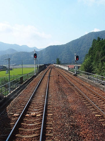 瀬戸内海の兵庫県上郡(かみごおり)町からその鳥取県智頭町まで走るローカル鉄道が智頭線。単線で、森の中を抜けて走ります。運行会社は第3セクターの智頭急行。一両列車で天然アユの里である千代川を走り、スギとヒノキが織りなす深緑のキャンパスを眺めながら風景を楽しめるローカル線です。