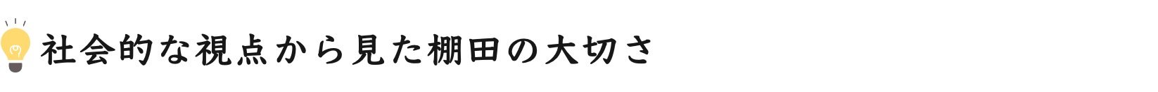 高齢化や過疎化が進む中で、棚田は地域に仕事を生み、若い世代や移住者にとっての新しい拠点にもなります。守り、育て、つないでいくことで、ここに生きる希望が生まれていきます。