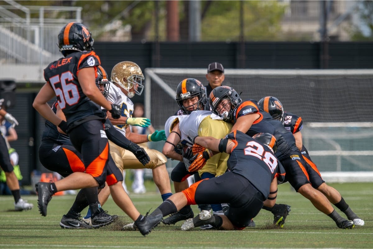 現在私たちは、1部・2部・3部と3つのリーグで構成されている日本最高峰のアメフトリーグ「Xリーグ」の「2部」に所属し、昨年の東日本秋季公式戦では見事、初優勝を果たしました!いよいよ手の届くところまで迫った悲願の1部への昇格を目指して日々練習に明け暮れています。