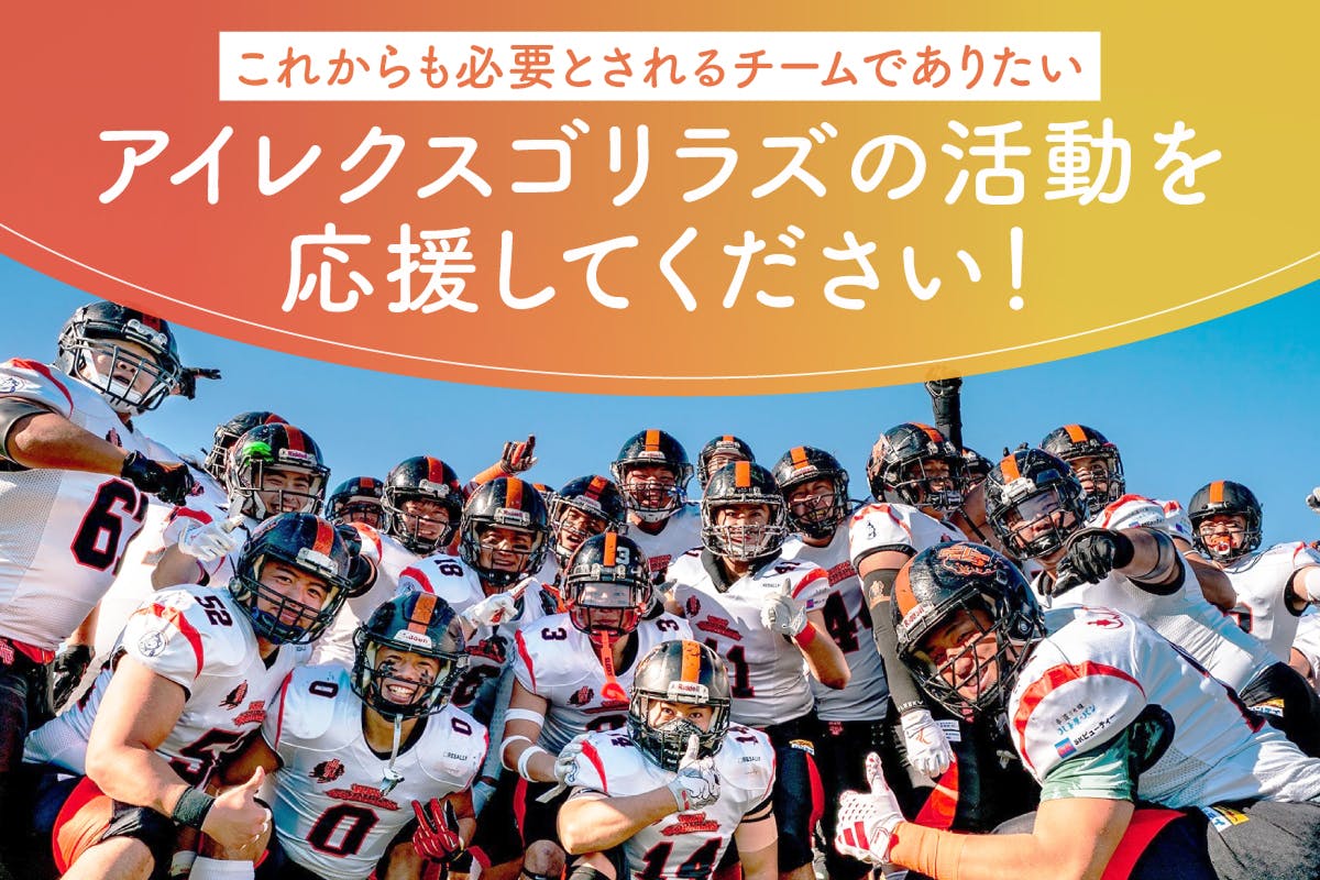ゴリラズが目指すのは、試合に勝ち続けるチームだけではなく、ファンや社会に「必要とされるチーム」を作ること。アメフトを通じて、貧困家庭や社会的マイノリティの人たちがより生き生きと暮らせる未来を実現したいと願っています。私たちの取り組みがもっと広く認知され、賛同してくださる方が増えれば、よりたくさんの活動に挑戦したいと考えています。