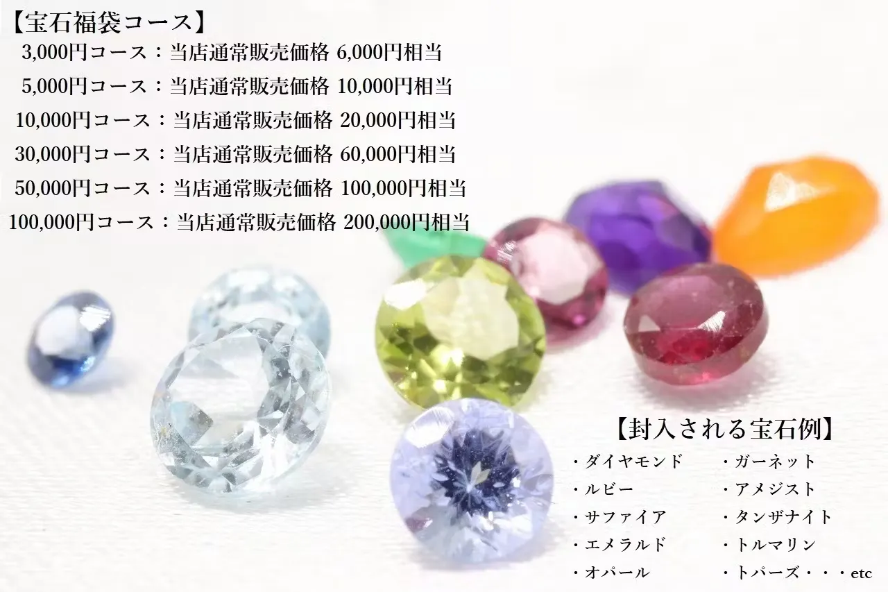 2025年の宝石福袋をひと足早く先行販売いたします!6コースの福袋をご用意させていただいております!!