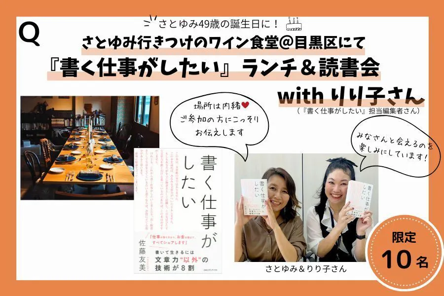 京都「粋」さんでの『書く仕事がしたい』読書会は、どちらもすぐに完売になってしまったのですが(ありがとうございます)、東京でもやってほしいという声をいただいたので、東京でのランチ会&読書会を企画しました!