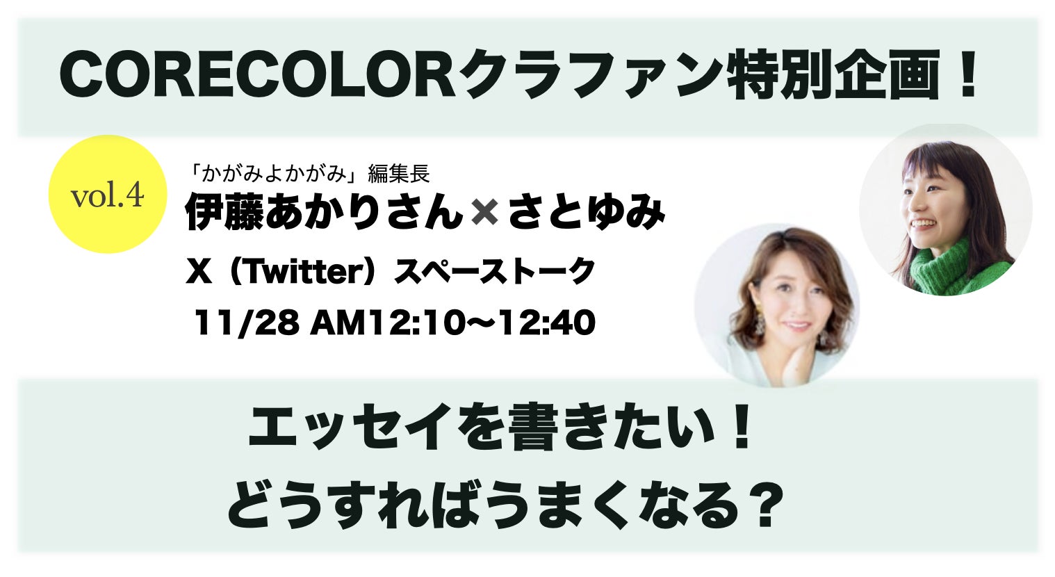28日(木)のランチタイムに、エッセイ投稿サイト「かがみよかがみ」の伊藤あかりさんと、さとゆみが「エッセイがうまくなるためには?」トークをさせていただきます。