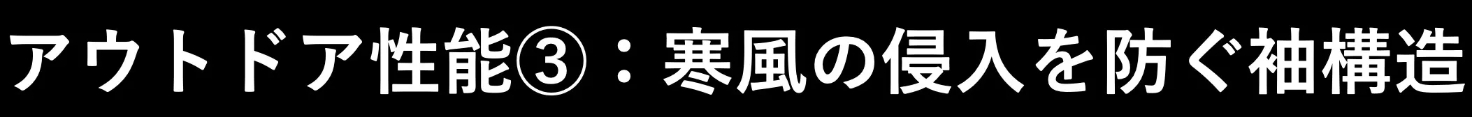 アウトドア用アウターなら標準装備の袖の中のリブ構造。この袖リブがあるお陰で袖からは寒風が入ってきません。しっかり袖も閉鎖して衣類の暖かさをキープします。