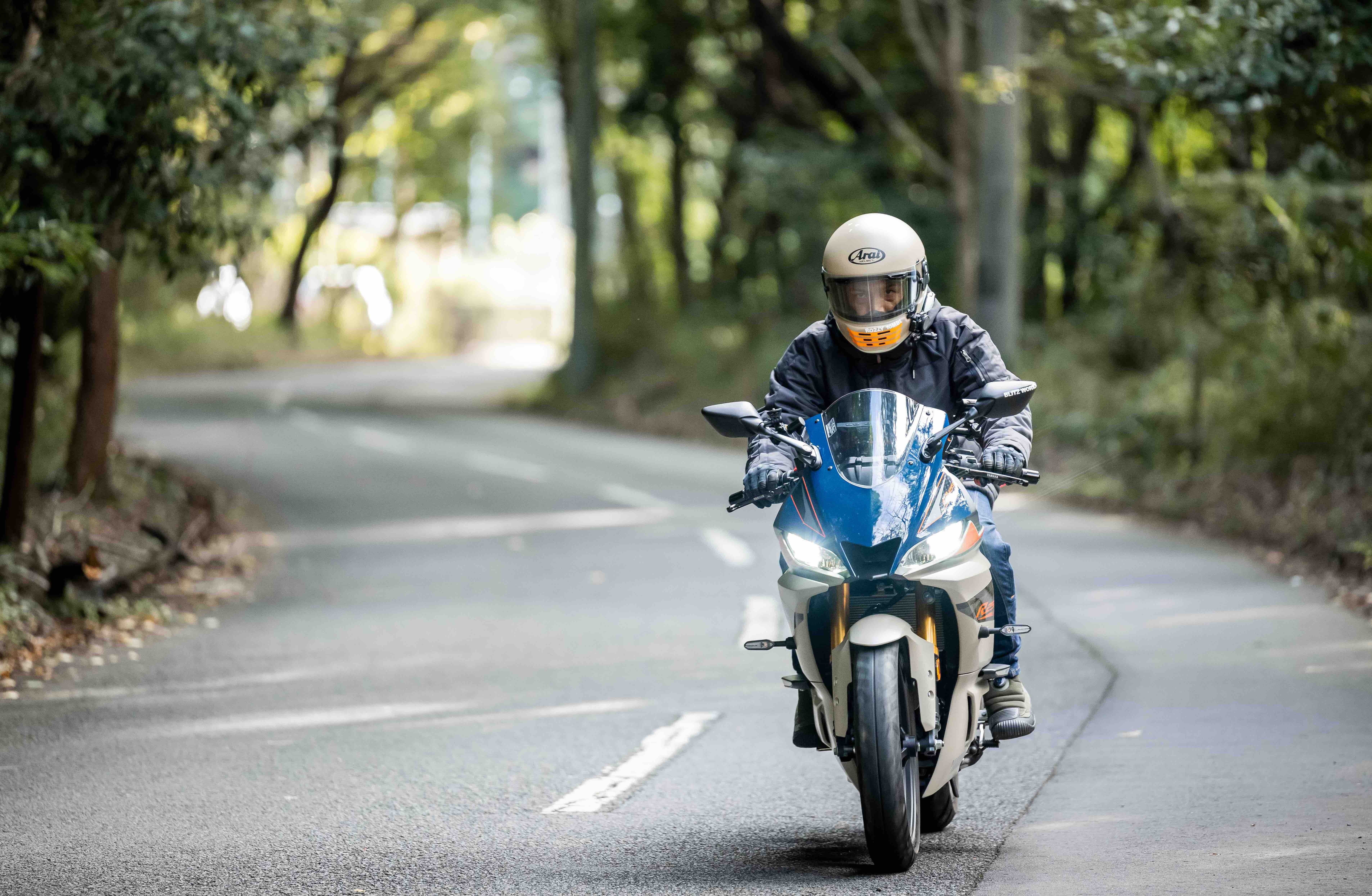 バイクに乗った姿勢で開発されている立体構造です。アウターですよ!これ!アウターで立体構造でバイク乗車に最適化されています!