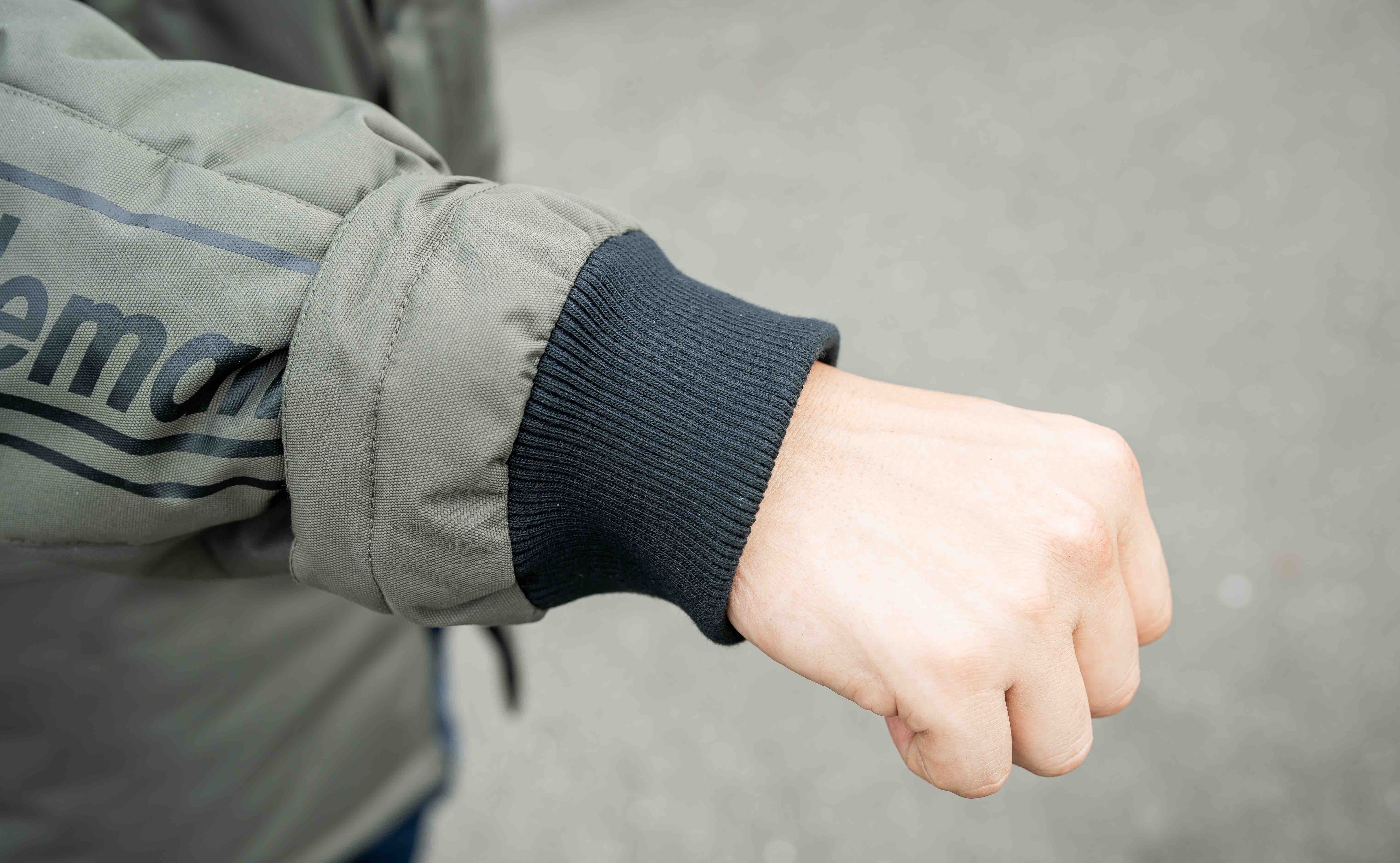 バイク乗車にこの袖リブが更に効果を発揮します!リブの上にグローブを着用出来る様になっています。これで真冬のツーリングの袖からの寒風を完璧に遮断しますよ!