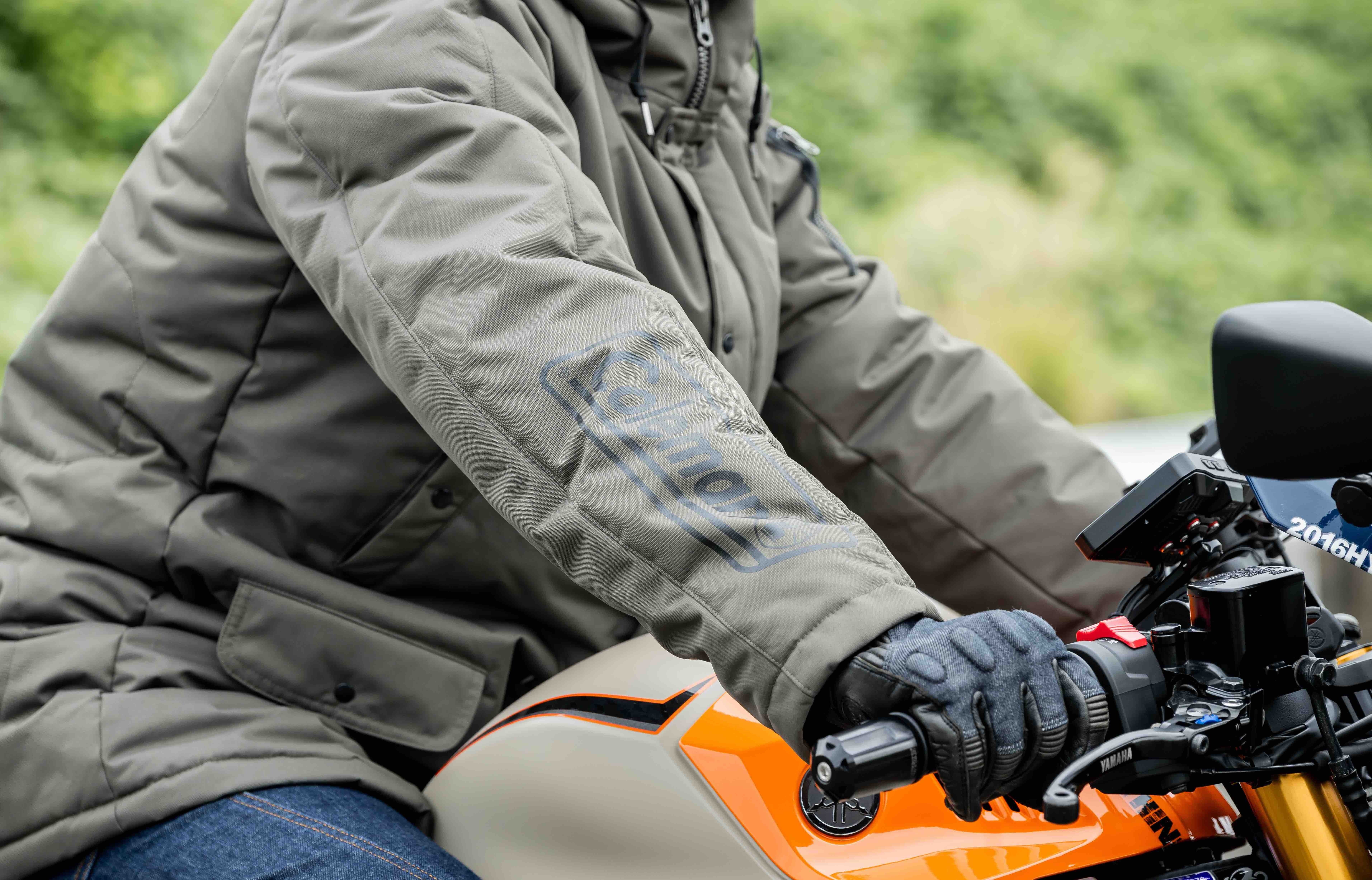 パッと見た目が男性が大好きなミリタリー?アウトドア?系のアウターでバイクに乗ってる様に見えますよね。なんと驚きですが・・・このバイク用アウターは・・・あの!あの!米国アウトドアブランドColemanとコラボ開発したんですぅ٩( ᐛ )و