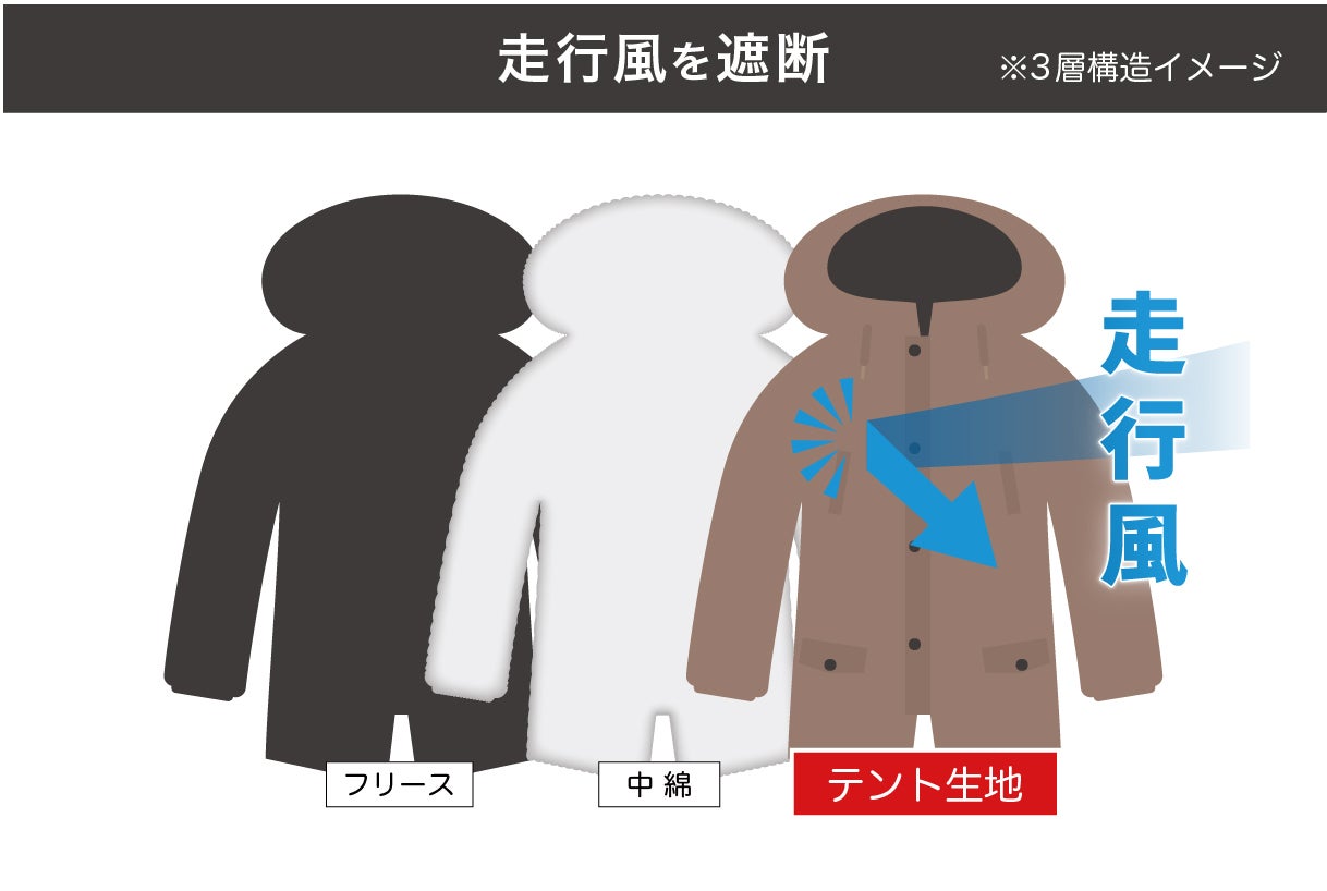 アウトドア界の雄であるColeman。そして、Colemanのテントを衣料品に落とし込んだ【着るテント】というコンセプト。冬の屋外で快適に過ごす機能は?それは防風性能です!