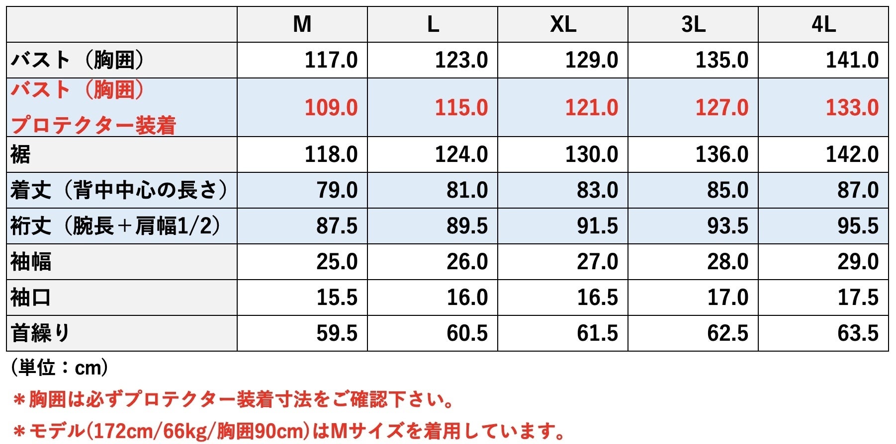 -サイズ:M、L、XL、3L、4L・・・下記寸法表を必ず参照