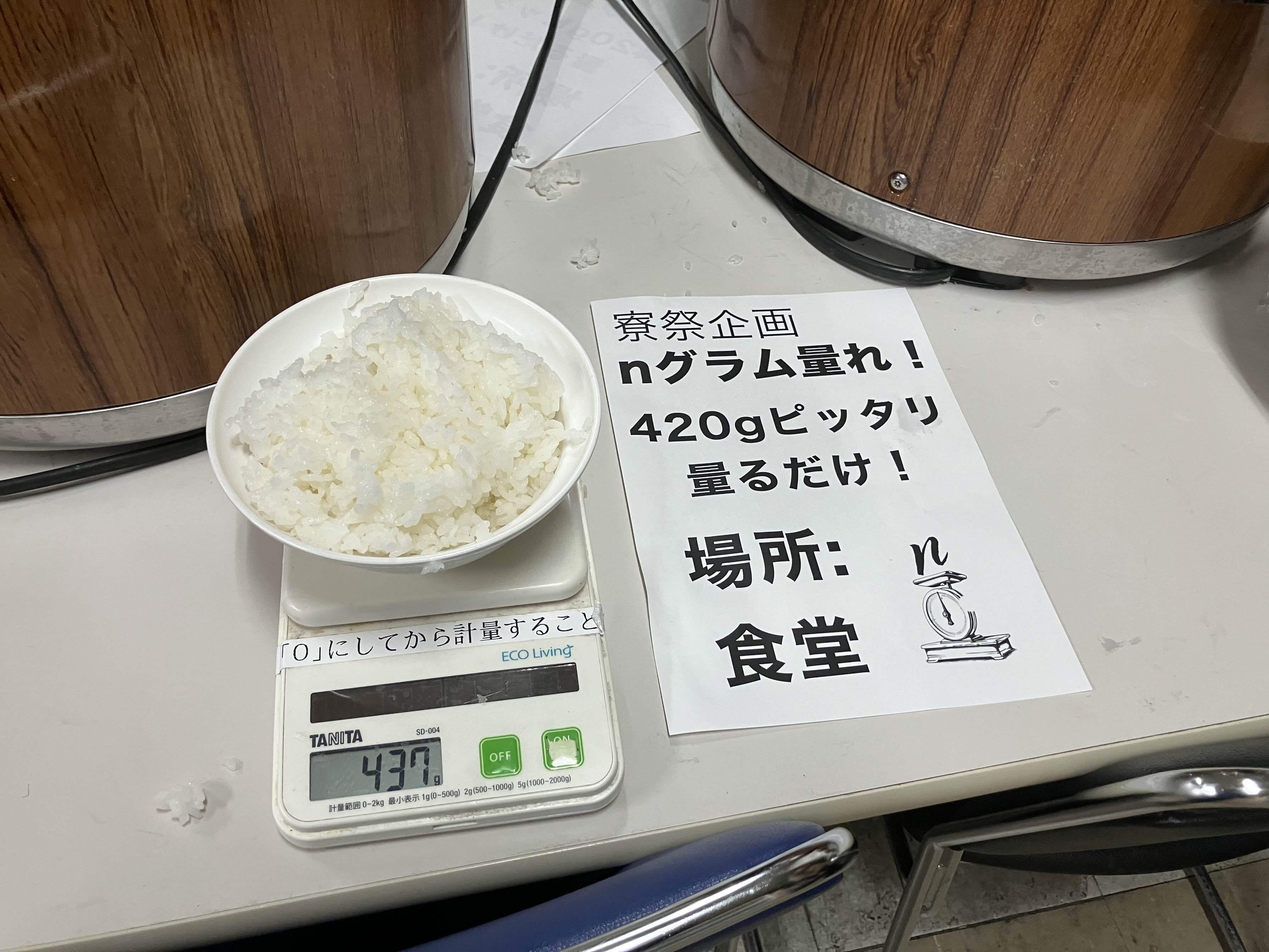 目が覚めたのは19時である。よくあることだ。 寮祭のホームページを眺めて、面白そうな企画がないか確認する。どうでもいいが、今年の寮祭HPは実にクオリティが高い。デザインもいいし、軽くて便利だ。一体誰が作ったのだろう。 「人狼したい!」という企画があった。17時かららしい。19時でもまだやっているはずだ。食堂に行くと、ちょうどひとを集めている最中だった。時間があるので寮食を買うと、「nグラム量れ!」が開催されていた。