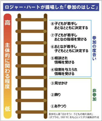 ジュニアリーダーとして経験した地域活動は、ロジャー・ハートが示す「参加のはしご」を着実に1段ずつ上がっていくかのようなものでした。