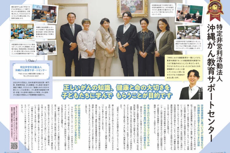 このようなことから、学校教育活動全体で健康教育の一環として「外部講師を活用したがん教育」を推進することは、児童生徒が生涯を通じて自らの健康を適切に管理し、改善していく資質や能力を育成する上で、重要なことだと考え、NPO法人沖縄がん教育サポートセンターを立ち上げました。