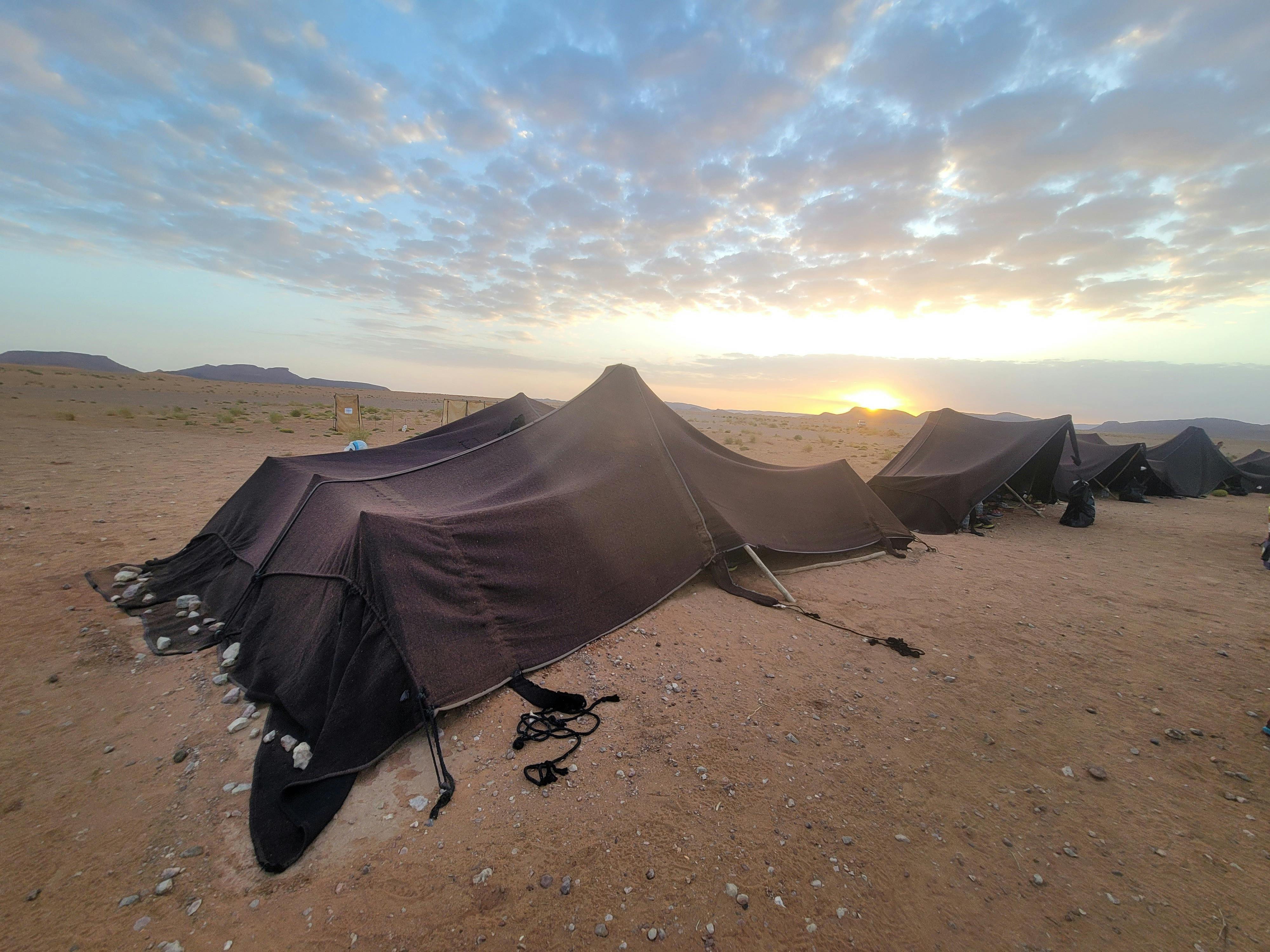 ちなみに…宿泊しているテントはベルベル式です。木の枝と布でできており、中はかなり暑いです。なので、基本夕方までは片側を開けているのですが、風に運ばれて砂もテントの中へ…。サハラの醍醐味ですね!