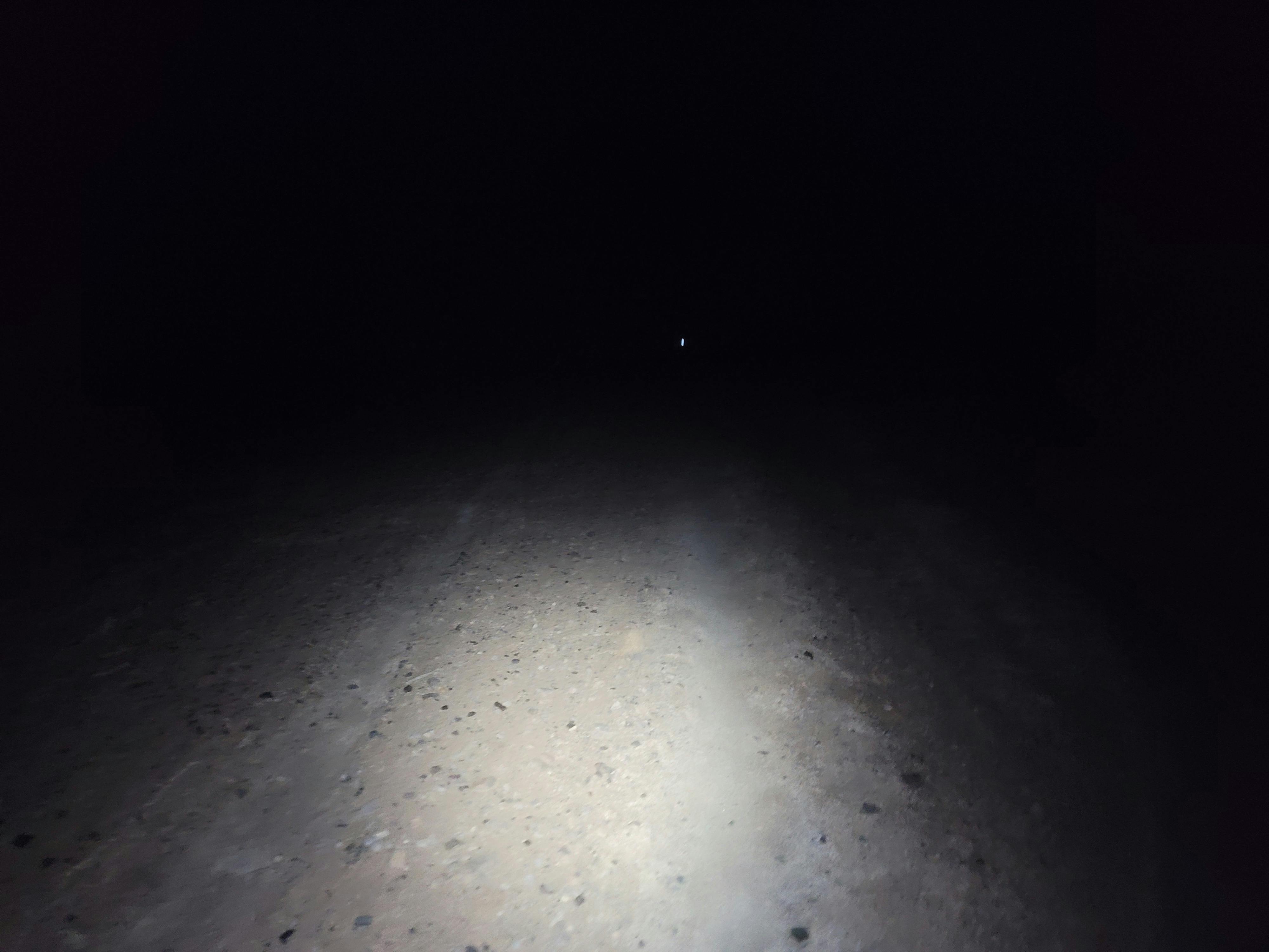 日が落ちると辺りは真っ暗な闇に包まれ、自分のヘッドライトと光に反射するフラッグだけを頼りに進んでいきます。