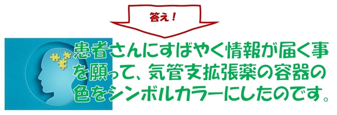 喘息に悩んでいる患者さんに、すばやく適切な医学情報が届く事を願って、効果が早く現れる気管支拡張薬に使われている色を、シンボルカラーにしたのです。