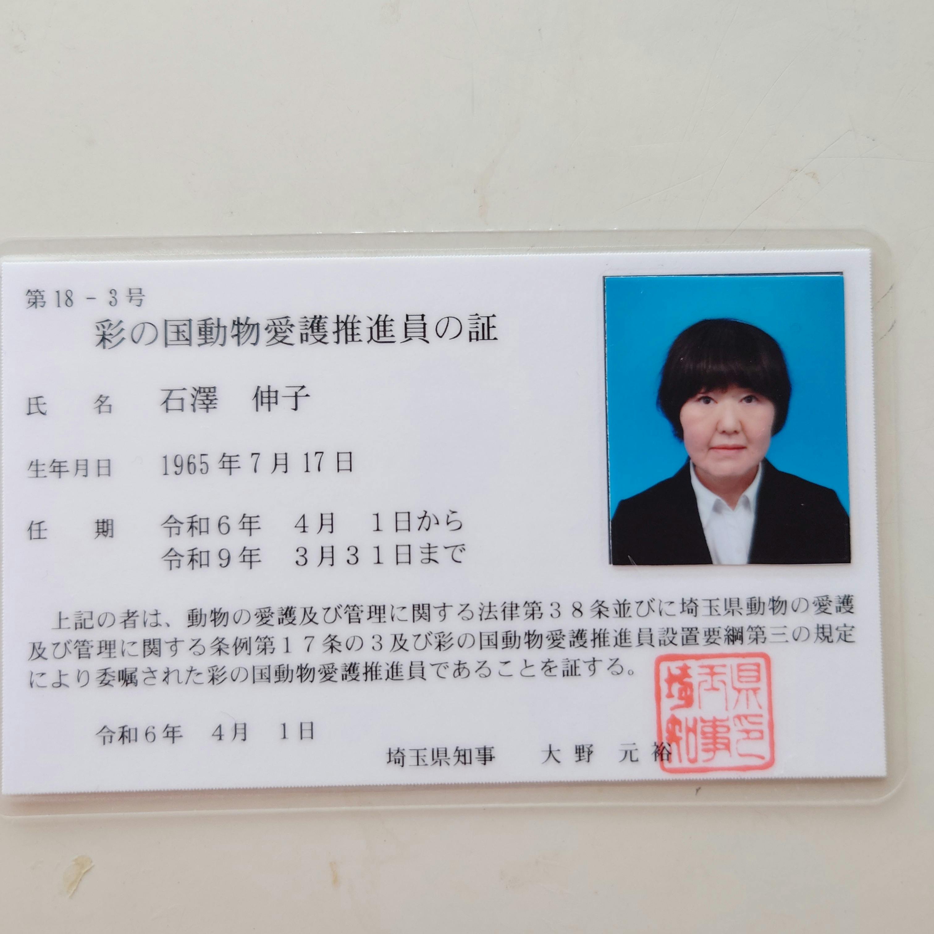 初めまして。埼玉県で彩の国動物愛護推進員をしています石澤伸子と申します。