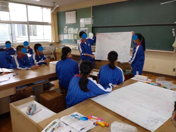 皆で考えた「はたらくとは?」を発表、3グループとも、素晴らしい意見が出ていました。