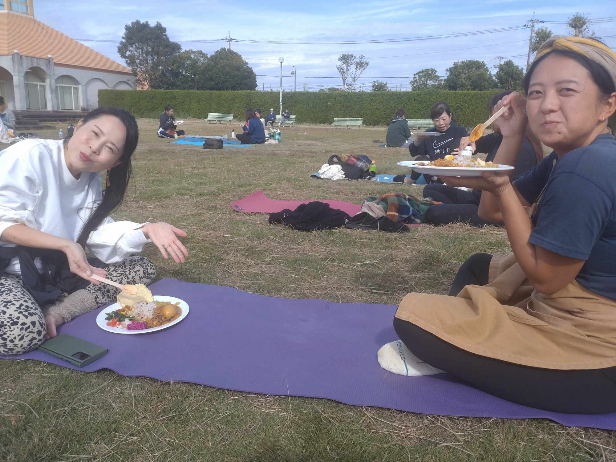 ヨガ終了!!太陽も出てきて、これからピクニックタイムです!!