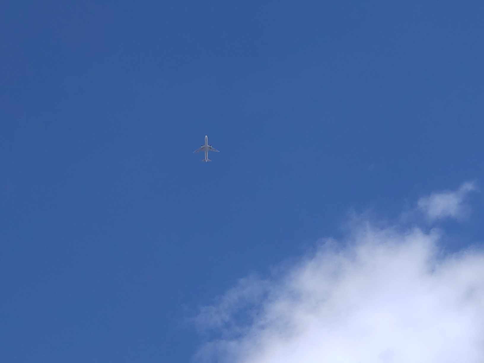 飛行機が飛んでいます!!千葉県では上空を通る飛行機の航路を見て、その日の上空の風向きを確認するという技があります(マニアな話になるので、ここは端折ります)