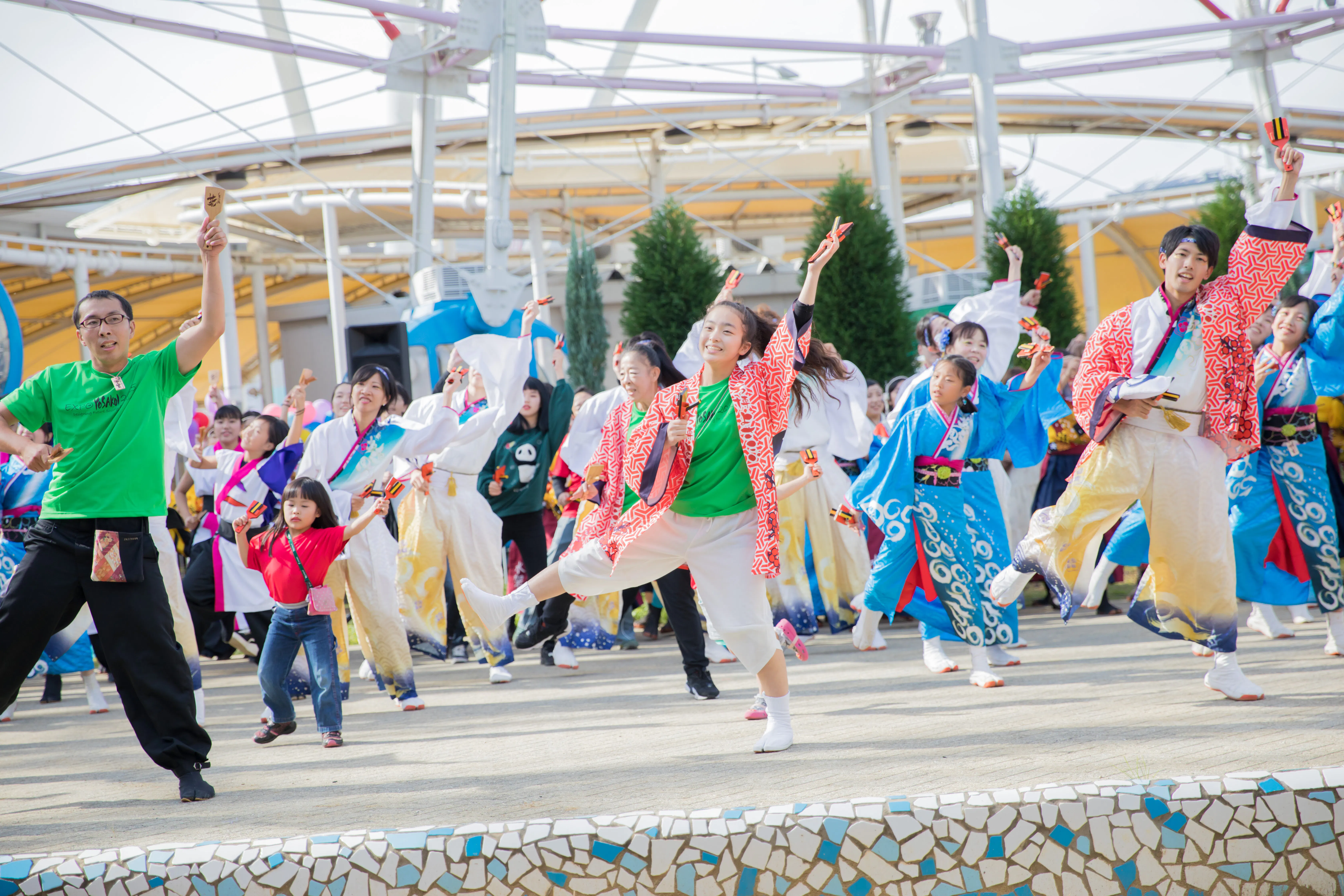⇒普段のよさこい祭りのように各催事場ごとに演舞スケジュールを設定し演舞いただくことで、大阪・関西万博内で一大よさこい祭りを開催いたします。