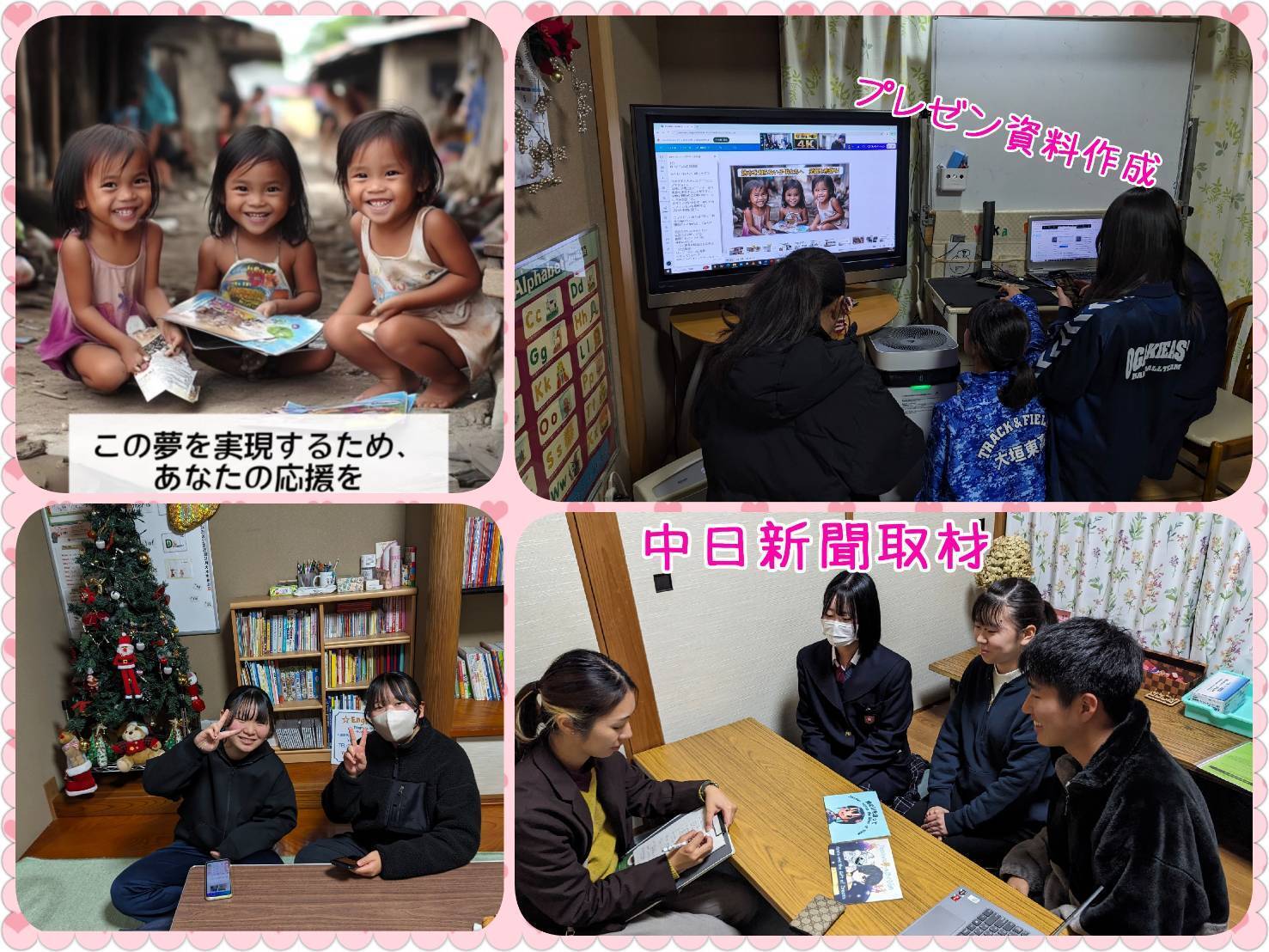 【中学生とディベート】12/23は、興文中学校3年生4クラスが集まる体育館と、English Clubをつなぎ、ZOOMでディベートをしました(^^)/テーマ:孤児院やスラム街に住むフィリピンの子供達に読み聞かせをするために渡航すべきか否か?私たちがやっている絵本プロジェクトに疑問を抱くチームと意見を交わしました。・フィリピンは安全な国というより、むしろ危険が多いと思う。・命を落とす危険がある。・文字を読めない子もいると思うが、何で絵本なのか?・郵送したらいいのでは?など、色々な意見が出ました。私たちは、•事前にYUKA先生が視察に行っている。•国の留学支援「トビ立て留学」にも採用されているコースで過去にも日本人が行っているのでホスト体制は万全。•実際に行くことに価値がある。世界の状況を自分の目で見て、五感で感じることができる。•日本の文化や習慣を伝えることでお互いを理解できる。•実際に長年学習してきた英語を使うことができる。•学びを座学から実践のフェーズへ移して、行動することに意義があるなど、熱意を持って活動していることを伝えました。あっという間の1時間でした。協力して下さった先生、ありがとうございました。