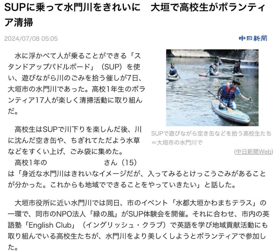 2024年7月:水門川SUPボランティア活動(中日新聞&岐阜新聞掲載)