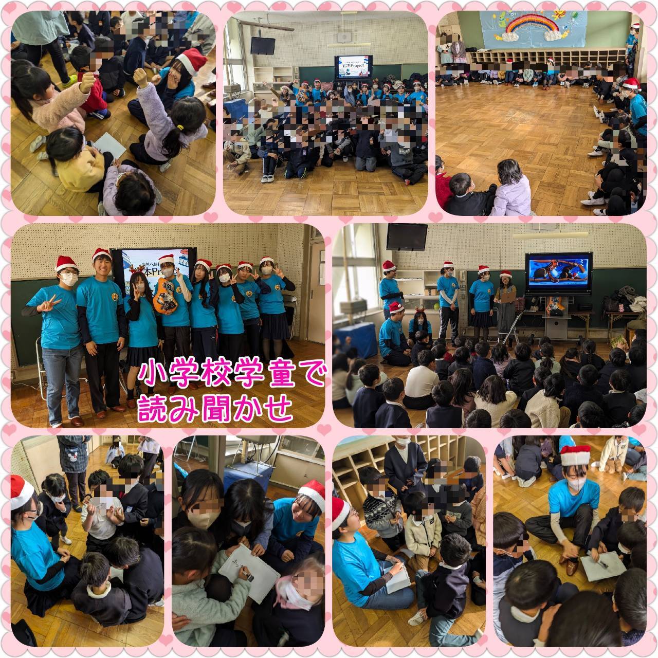 • 市内の小学校(学童)で読み聞かせ今週は高校は懇談WEEKということで午前授業なので、参加できるメンバー8名で市内の小学校へお邪魔してきました。ちょうどクリスマスなので、クリスマスの絵本を英語と日本語で読み聞かせ。①輪になってクリスマスの歌をうたったよ。(一緒に踊れるAction Song)②英語で自己紹介&記憶力クイズ③「どれにしようかな。天の神様の言う通り~」を英語で教えたよ。④yukAIのクッションを回しながらABCの歌を歌って、2回目のZでクッションを持っている子に絵本を選んでもらったよ。⑤選ばれた本は「Who will guide my sleigh tonight?」みんな、面白いクリスマスの物語を真剣に聞き、大笑いしてくれて感動しました。⑥「みんな揃うまで終わりまテン」8チームに別れて高校生がリードしながら、10問のお題に答えていきました。全員で回答が5個揃わないと永遠に終われないgame!例えば「クリスマスの食べ物といえば?」の答えは、ケーキとかチキンとかバラバラ。「オーストラリアのサンタさんは何に乗ってくる?」の答えは、サーフィンやイルカとかかわいかったです。最後は絵本からの出題でした。⑦みんなで7問答えが揃ったので、ご褒美「yukAI」シールを渡しました。1時間があっという間に終わってしまいました。小さい子に、英語の楽しさが伝わったと思います。高校終わって、お昼抜きでダッシュで帰って来た甲斐がありました。喜んでもらえてよかったです。 もっと見る