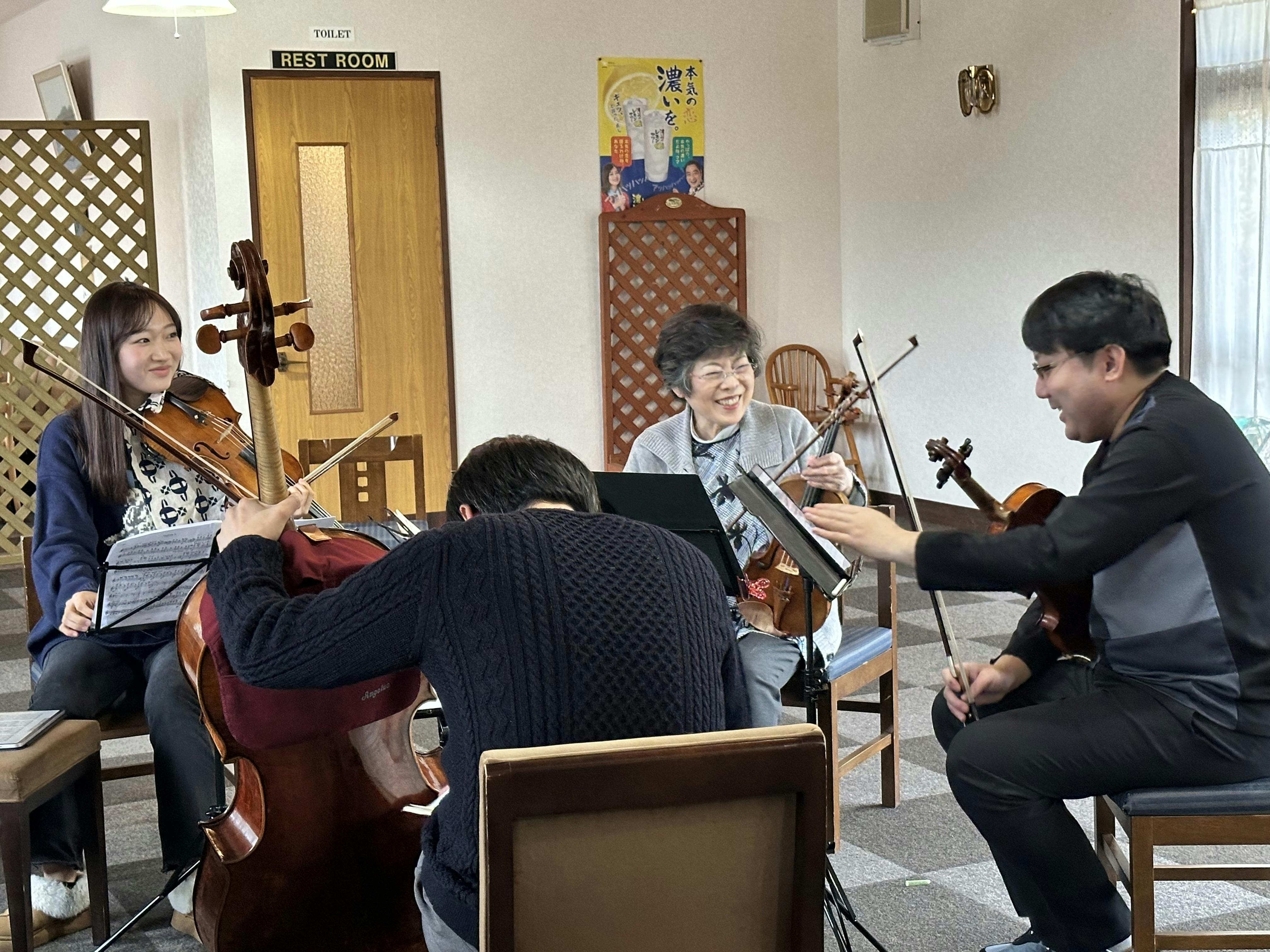 本事業は、異なるバックグラウンドを持つ奏者たちが集い、弦楽器室内楽を探求・研究する場です。