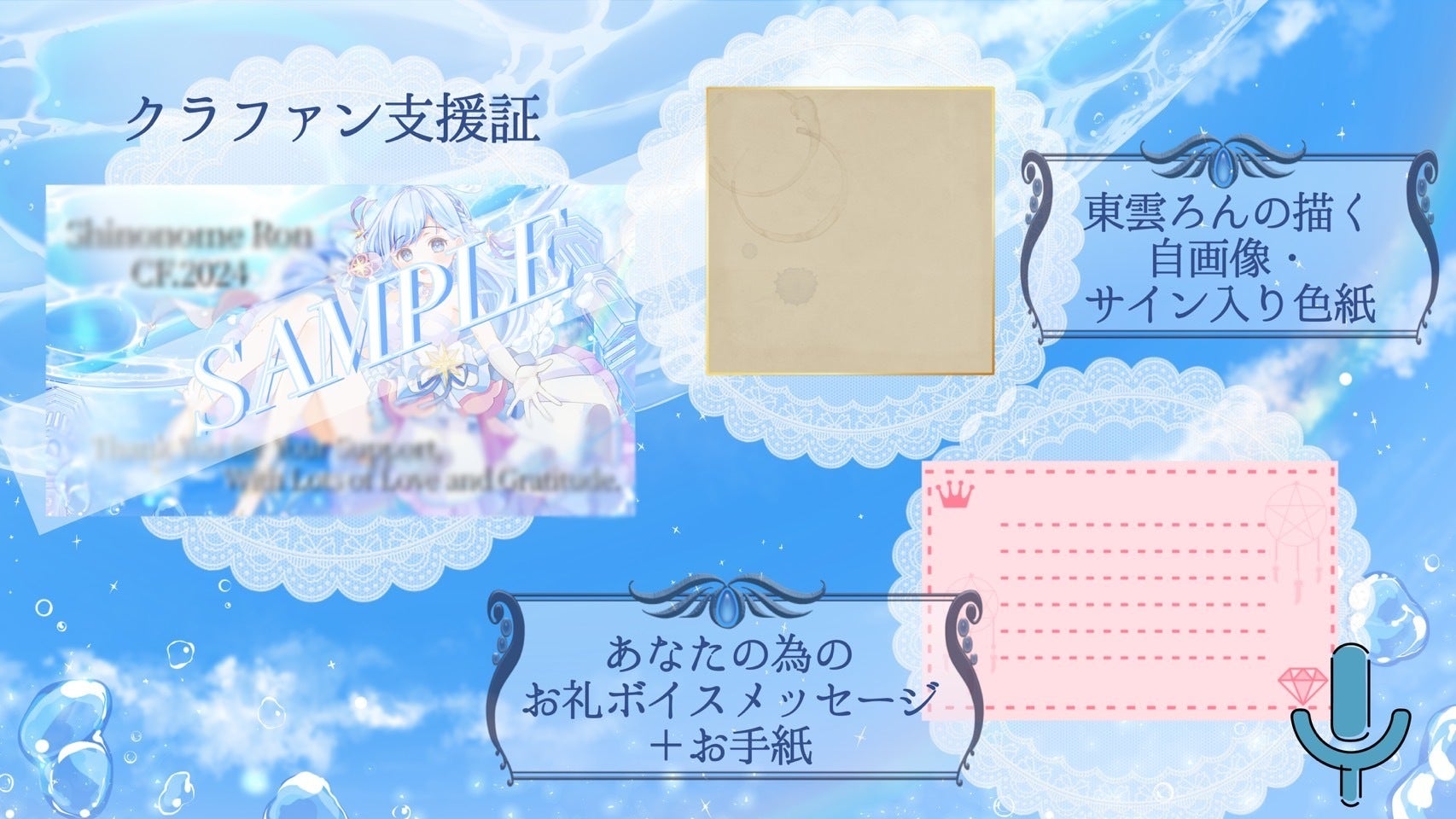 リターン発送のため支援者様のお名前やご住所等をご記載いただく場合がございますが、東雲ろんへ個人情報は開示されません。