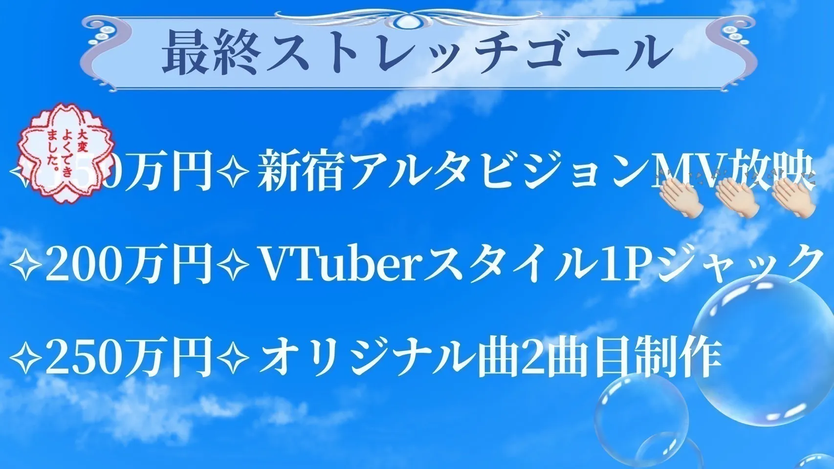 まずは、ストレッチゴールの第一段階。