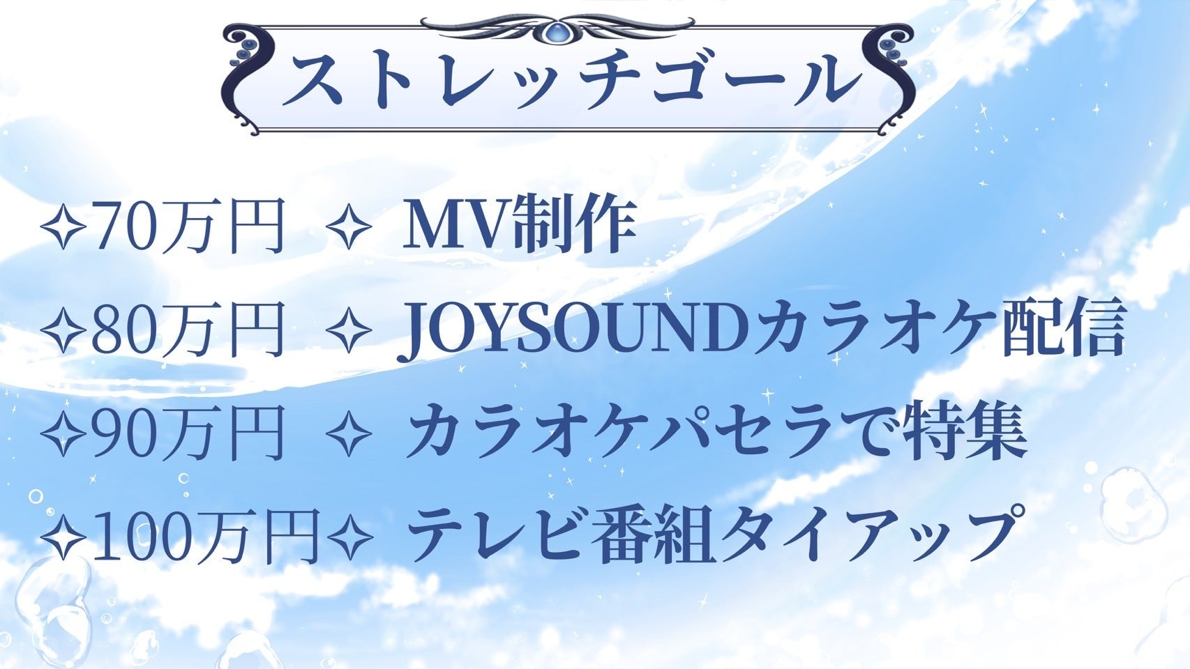 更なる飛躍を目指し、多くの方に知ってもらう為に「プロモーションの充実」へ向けたストレッチゴールを設定致します。