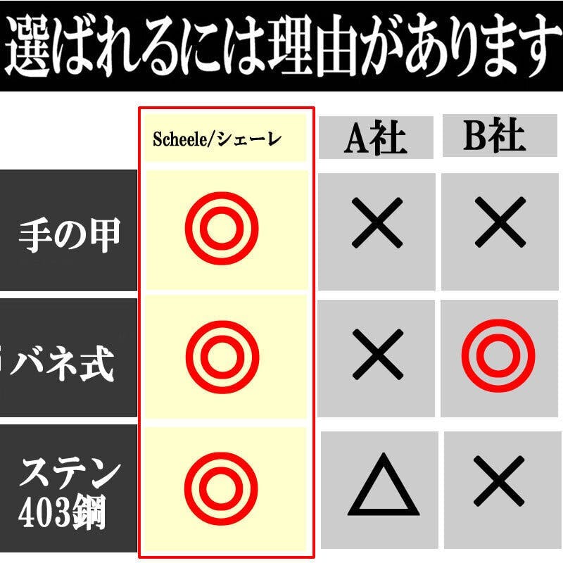 ハサミの切刃中央部を曲線上にする事で圧力をかけても遮断物への圧力が分散しにくい仕様になっている事から~Scheele~は硬い骨付きの肉等もサクッと切れます。