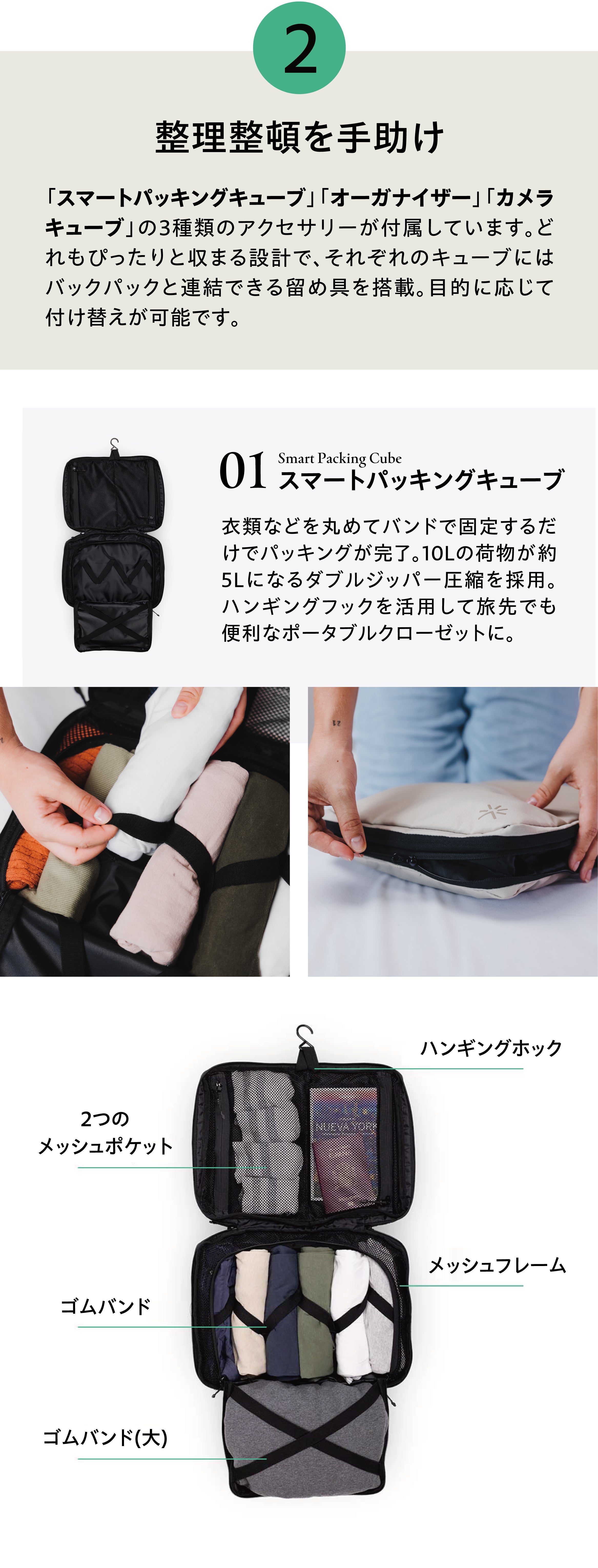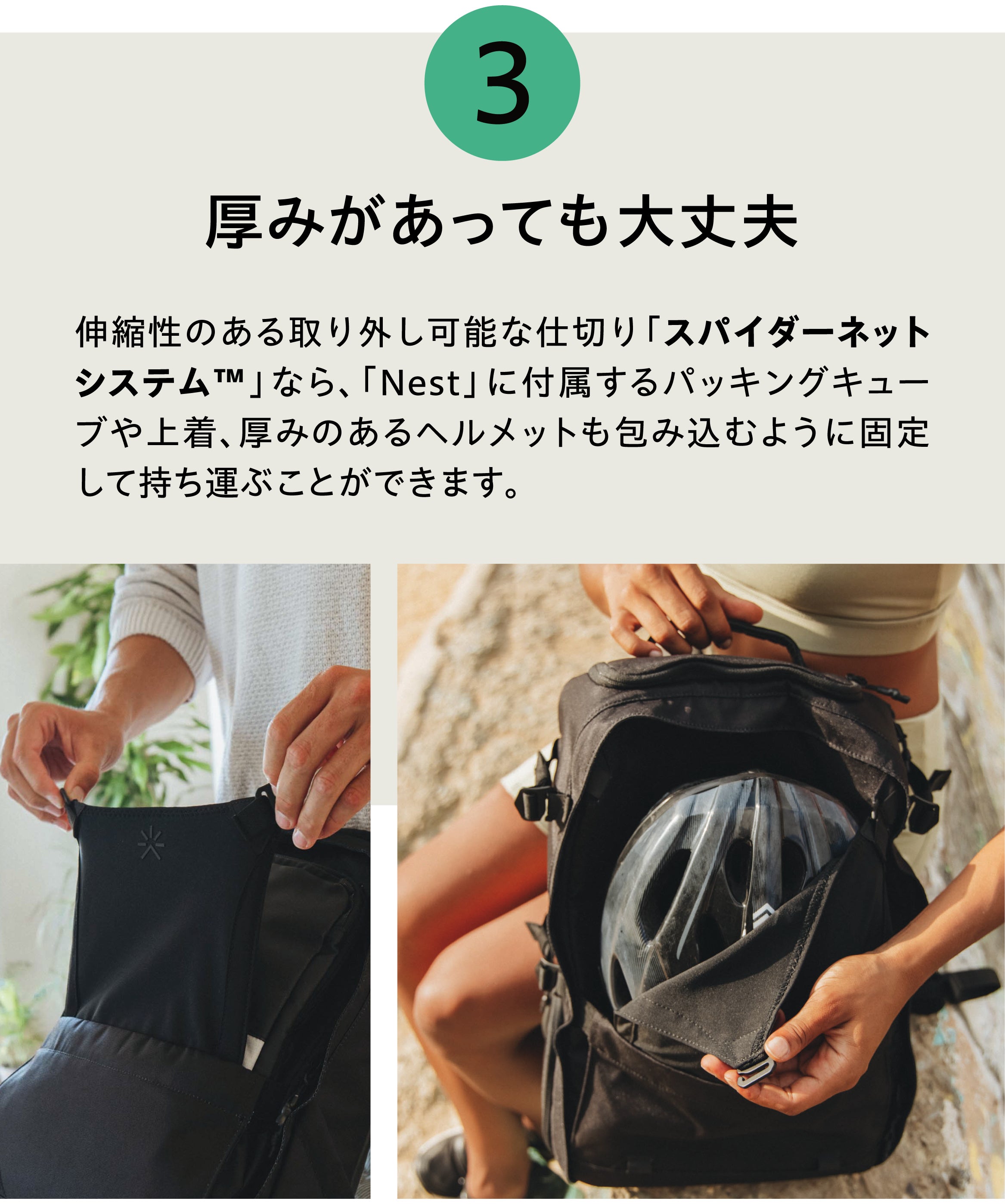 「こんなに入るのに、こんなにコンパクト!」を実現する、次世代のスマートバックパック-Nest-。
