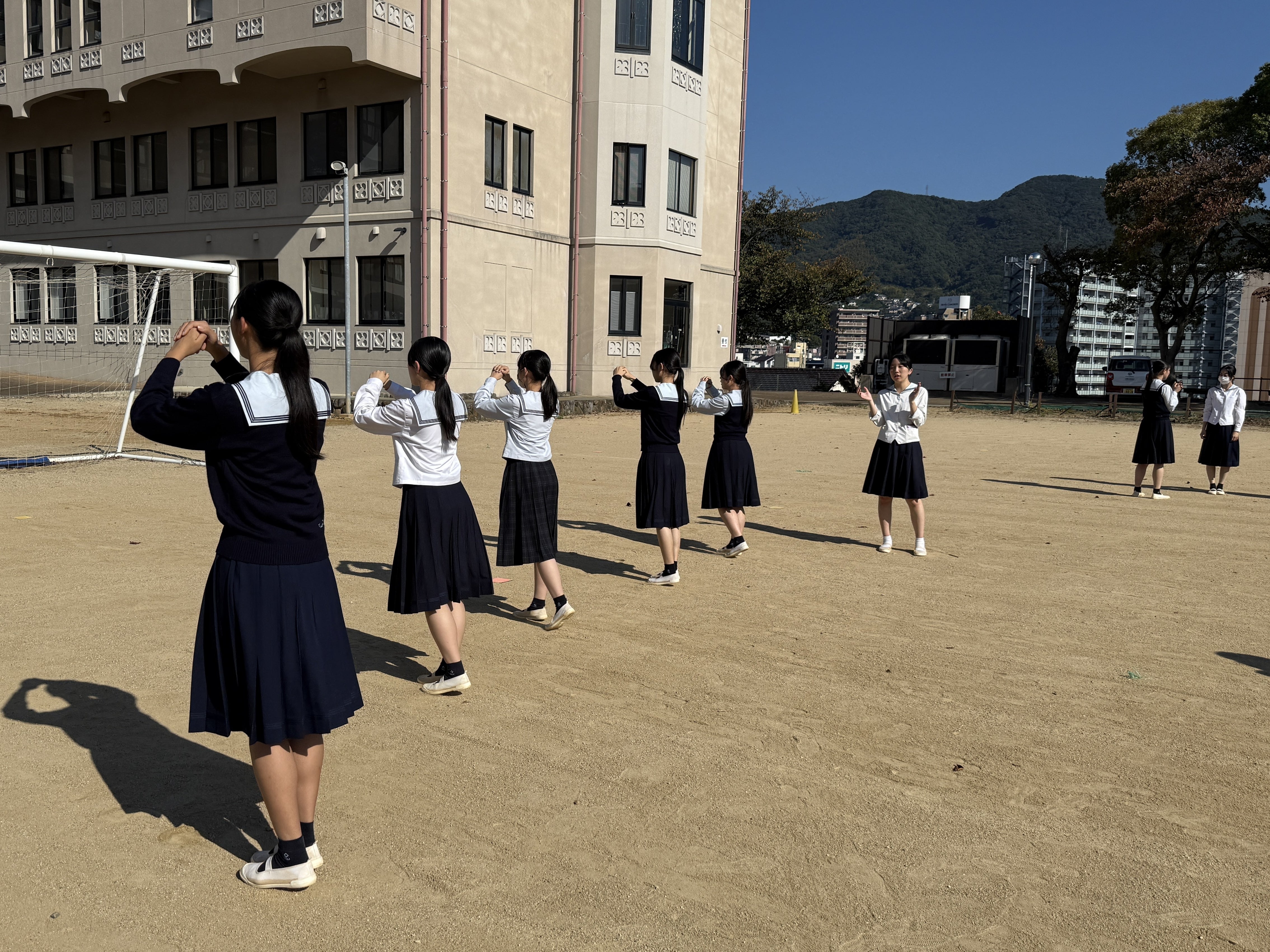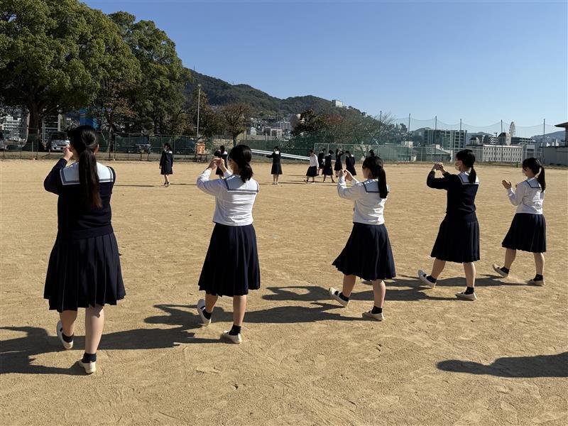 多くの有力校が上限81名で演技するなか、活水ブラスは3分の2の54名で挑戦しました。全員が足の動きなど細かな動作を精密機械のように正確にそろえ、明るく、澄んだサウンドで全国大会への切符を手にしました。それは、子どもたちが日々、朝、昼、夕と寸暇を惜しんで練習し、努力した結果のたまものです。私たちはそんな彼女たちを身近に見て、いつも元気と勇気をもらっています。授業中もしっかり聞いていて、本当に「すごいな」って感じています。時おり?目を閉じて聞いている生徒もいますが…(笑)。