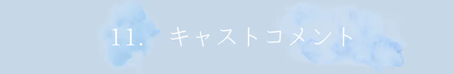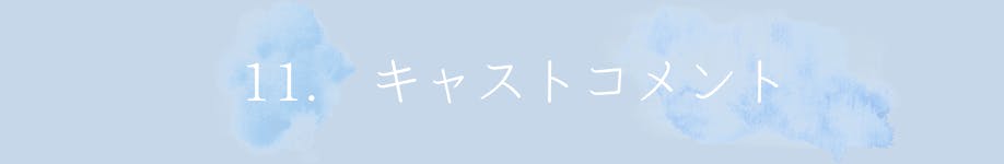 本作にご出演いただくメインキャストの皆様からのコメントを紹介させていただきます。
