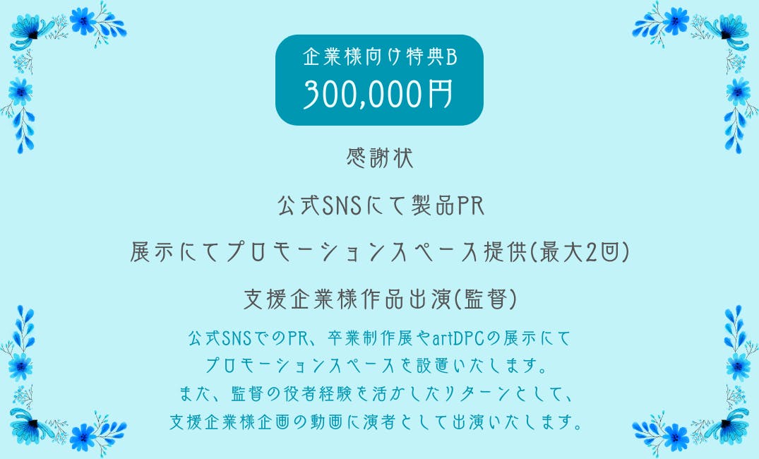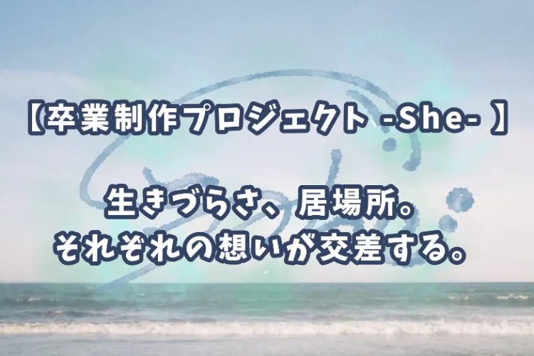 2025/02/18 10:00デジタルハリウッド大学卒業制作展3日間無事終了いたしました。そしてこのたび、ゼミにおいて「She」が最優秀賞を受賞いたしました。皆様のご協力があってこのような結果を残すことが出来たと思っております。改めてここにお礼を記させてください。ありがとうございます。また、2月末までこちらのクラウドファンディングは実施しております。是非暖かいご支援、よろしくお願いいたします。※先行公開のリターンにつきましては、半永久視聴権に変更とさせていただきます。 もっと見る03.リターンについて