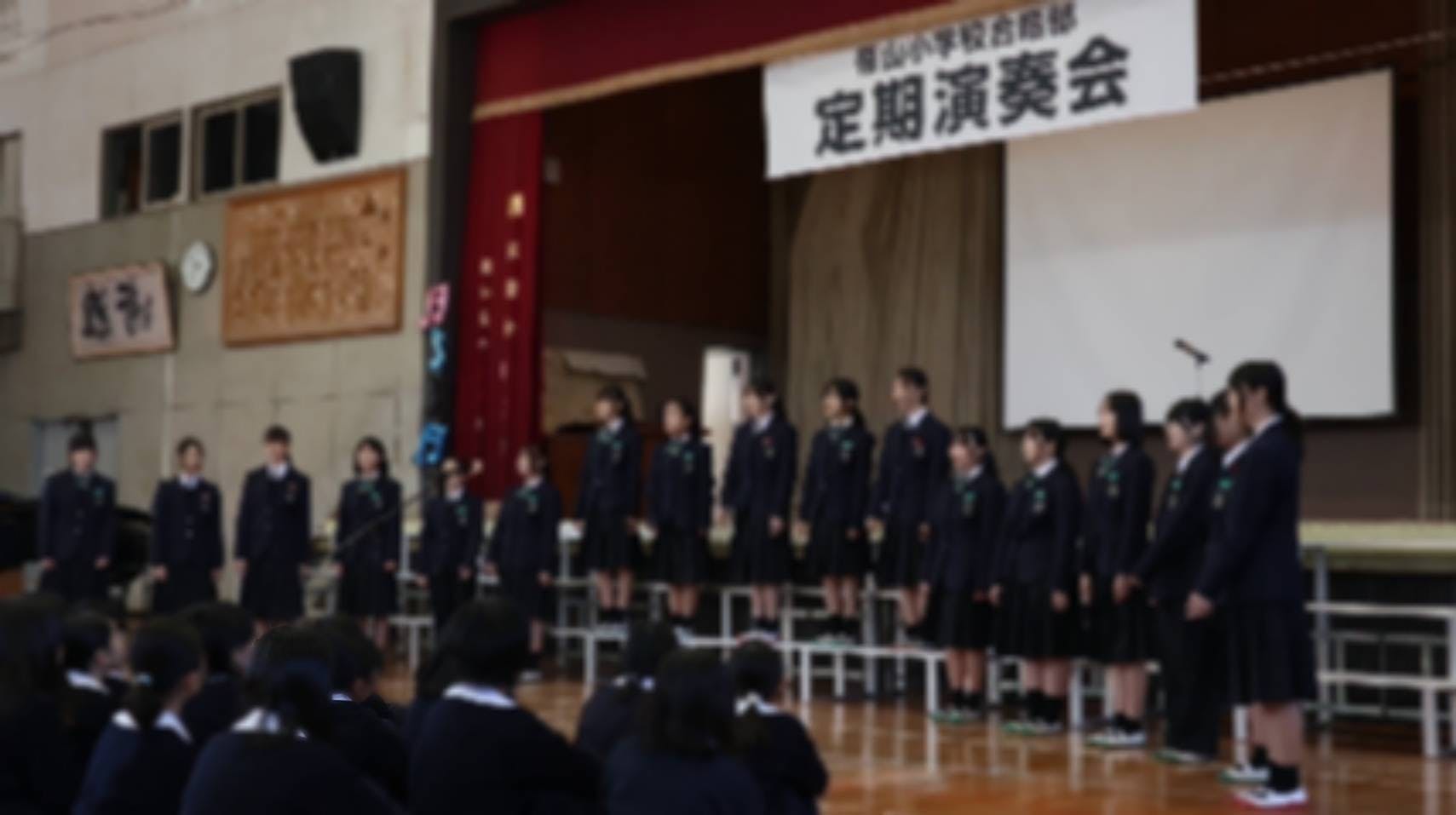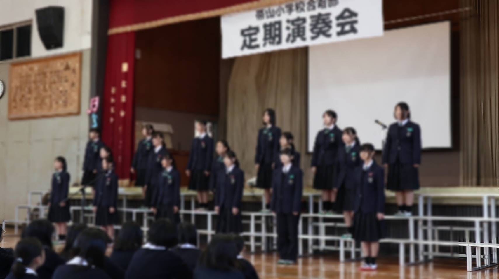 三年生や卒業された先輩方も応援に来てくださり、小学生の皆さんの真剣な眼差しを受け、部員たちは緊張しながらも、嬉しい気持ちと感謝の気持ちを込めて歌いました。