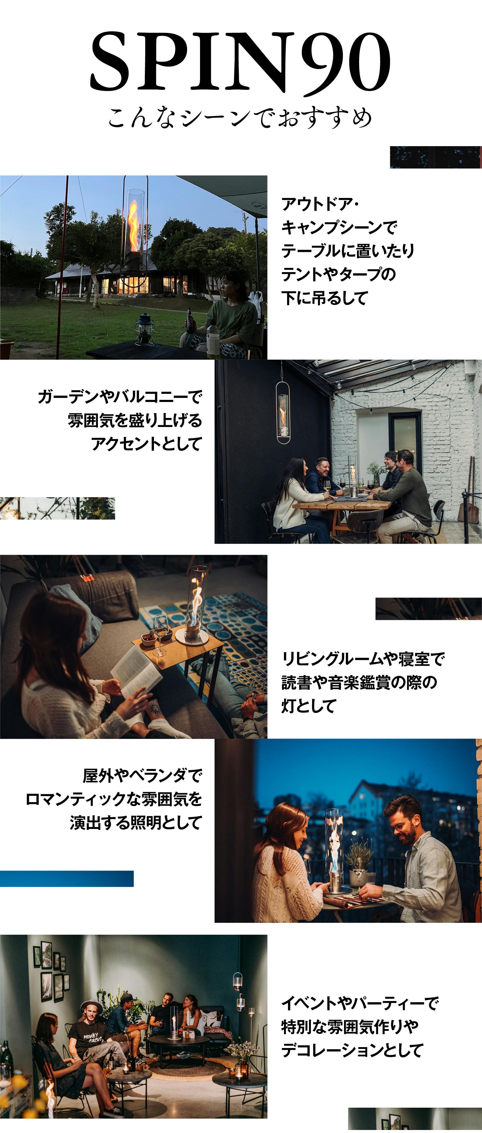 「火のある暮らし」をコンセプトに、グループ会社である(株)ディーエルディーと40年以上薪ストーブの輸入販売・施工まで行っている会社です。豊かなライフスタイル提案の一環として新たにBBQGrillやFirepitなどの輸入も始めています。今回の商品SPIN90は遡ること5年前ドイツhoefats社との出会いから生まれました。トルネード状に燃え上がるユニークなランタンSPIN90は多くのファンを獲得。海外のクラウドファンディングでも大人気を博し、晴れて日本での発売となりました。慌ただしい日常において少しでも「火のある暮らし」に触れて癒され、楽しんでいただければ幸いです。
