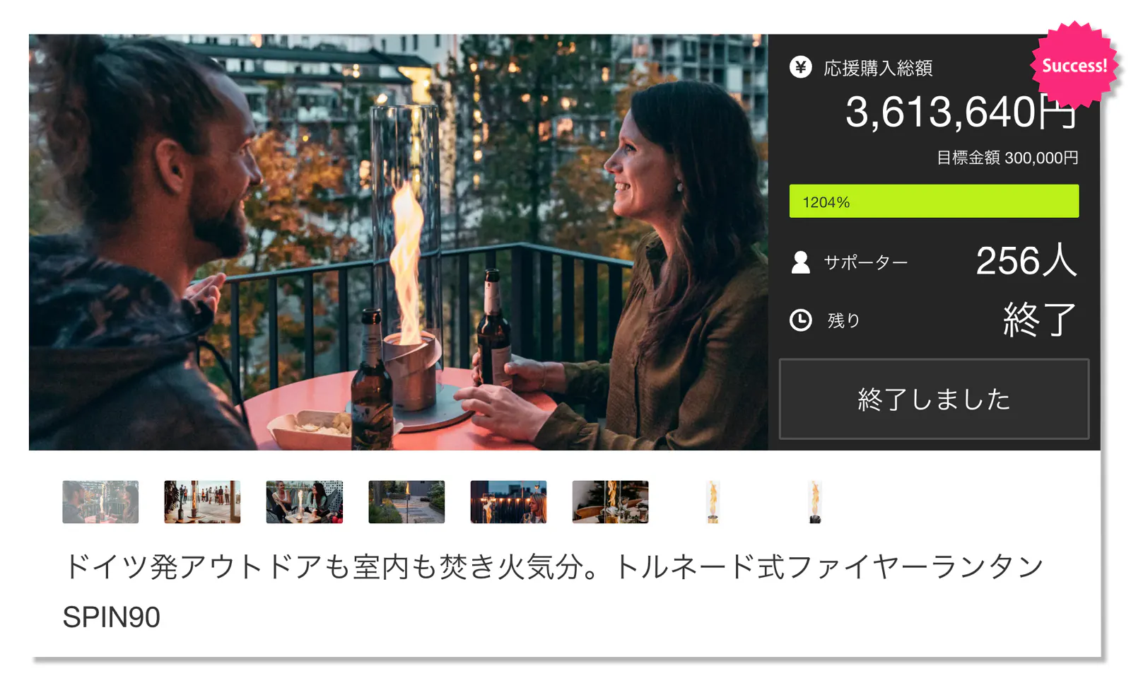 2024/10/31 19:00みなさま初めまして! hoefats&総輸入元の(株)エープラスです。この度CAMPFIRE様にて弊社のイチオシ商品hoefats社のSPINをお披露目できることになりました。SPIN90は、ただ火を灯すだけでなく、空間を幻想的に彩り、心身に癒しをもたらします。キャンプはもちろん、自宅でのリラックスタイムにも、特別なひとときを演出してくれるでしょう。インスタグラムでも最新情報を発信中!SPIN90の使用シーン、様子をご紹介しています。ぜひフォローして、リアルタイムな情報をチェックしてくださいね!https://www.instagram.com/hoefats_spin_japan/皆様の応援が私たちの原動力ですSPIN90を一緒に盛り上げていきましょう!引き続き、ご支援よろしくお願いいたします! もっと見る