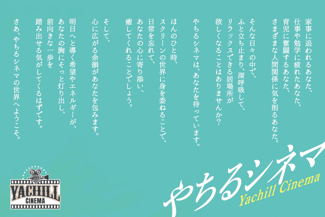 やちるシネマのキャッチコピーは「ほっと、ひと息。映画のひと休み」。