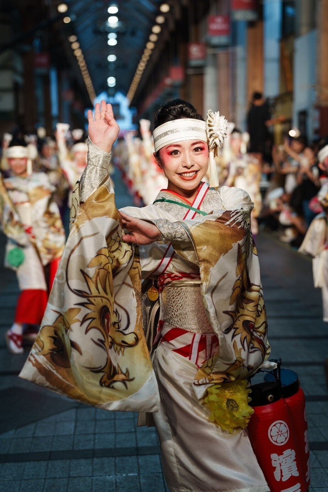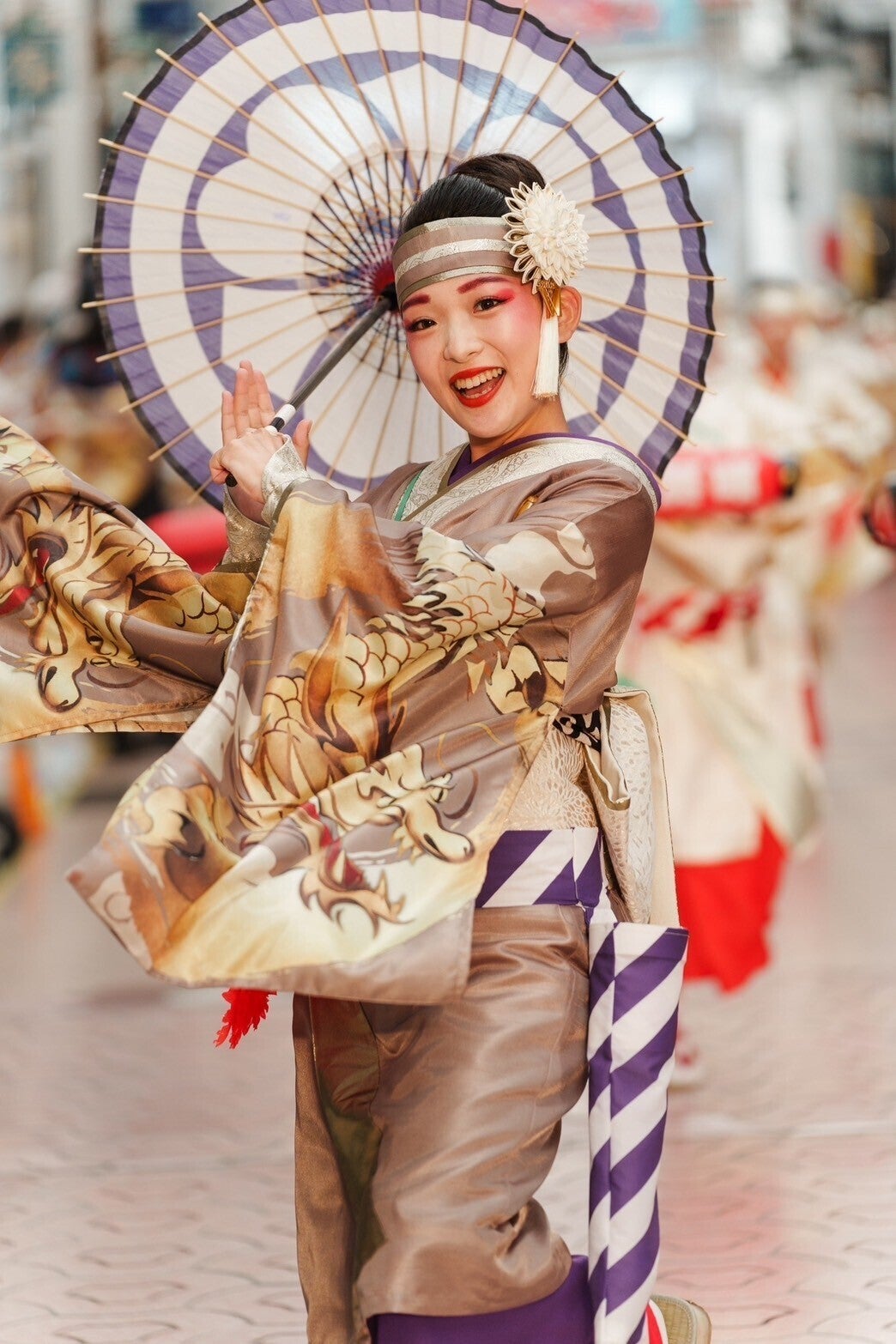 いくつかのルールを守っていれば、曲も振付も衣装も自由です。 多種多様な曲に合わせて、老若男女問わず沢山の人々が色鮮やかな衣装とチーム毎に特色ある踊りで高知の街中を活気づけます。 各チームの踊り子さんは夏の期間は休みや空き時間をすべてよさこいに捧げるほどの「熱意」を以って臨んでいます。